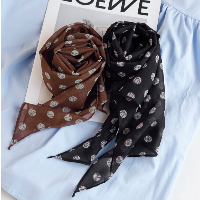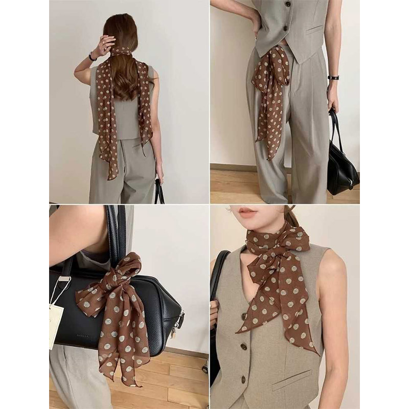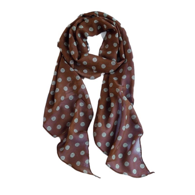 法式复古咖色长条波点丝巾女轻奢高级感百搭系脖薄款围巾发带配饰