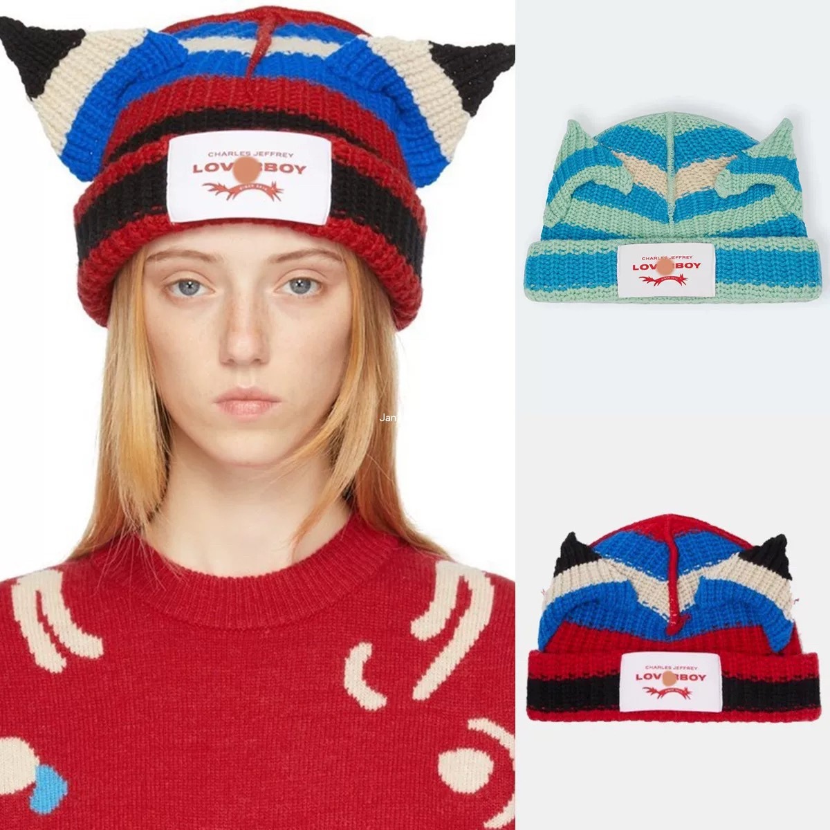 羊毛针织帽子女秋冬百搭小众情侣可爱猫猪耳朵毛线帽潮