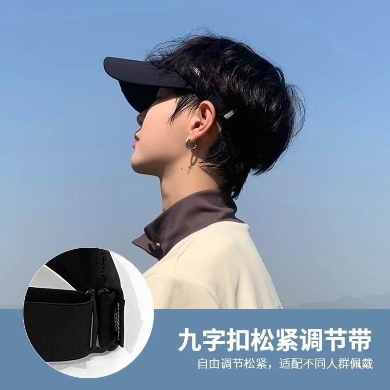 防晒帽子男新款夏季冰丝显脸小防紫外线太阳帽跑步运动鸭舌空顶帽