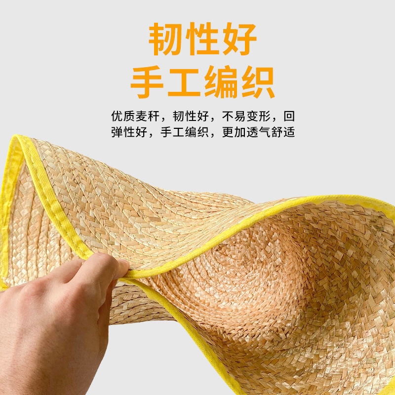 草帽农民防晒工地劳保 钓鱼野外户外遮阳帽大檐麦秆编织子草帽