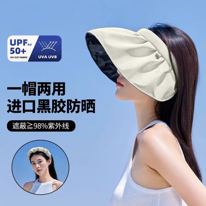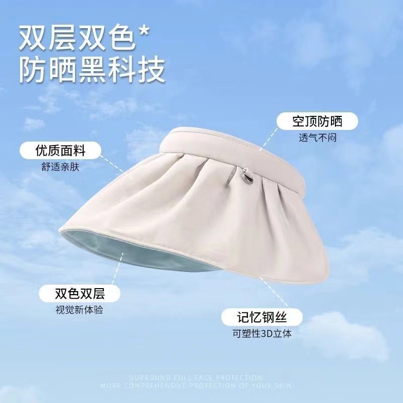 50+防晒帽女夏大檐防紫外线空顶遮阳帽遮脸太阳帽子贝壳帽