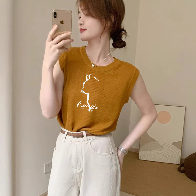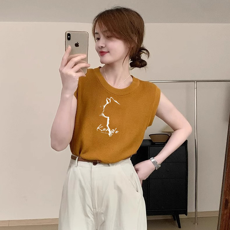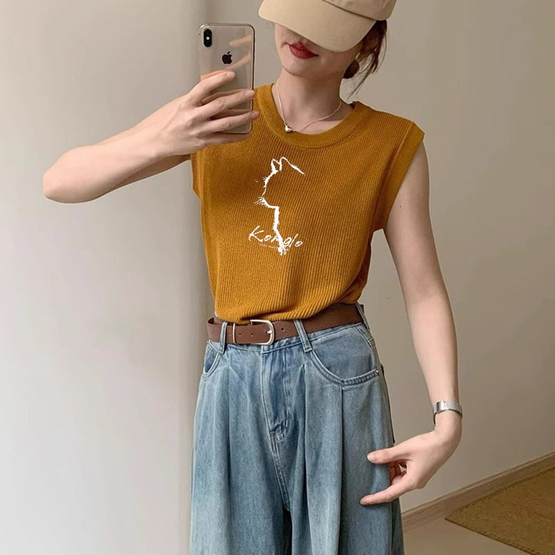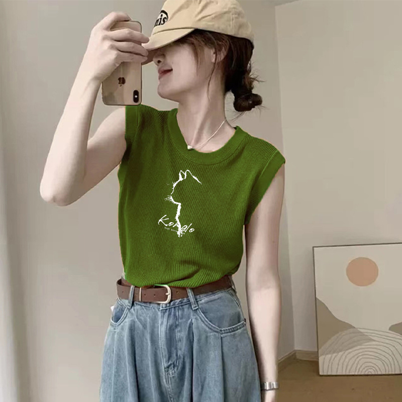绿色辣妹无袖背心女春季欧货正肩上衣设计感小众薄款冰丝针织t恤