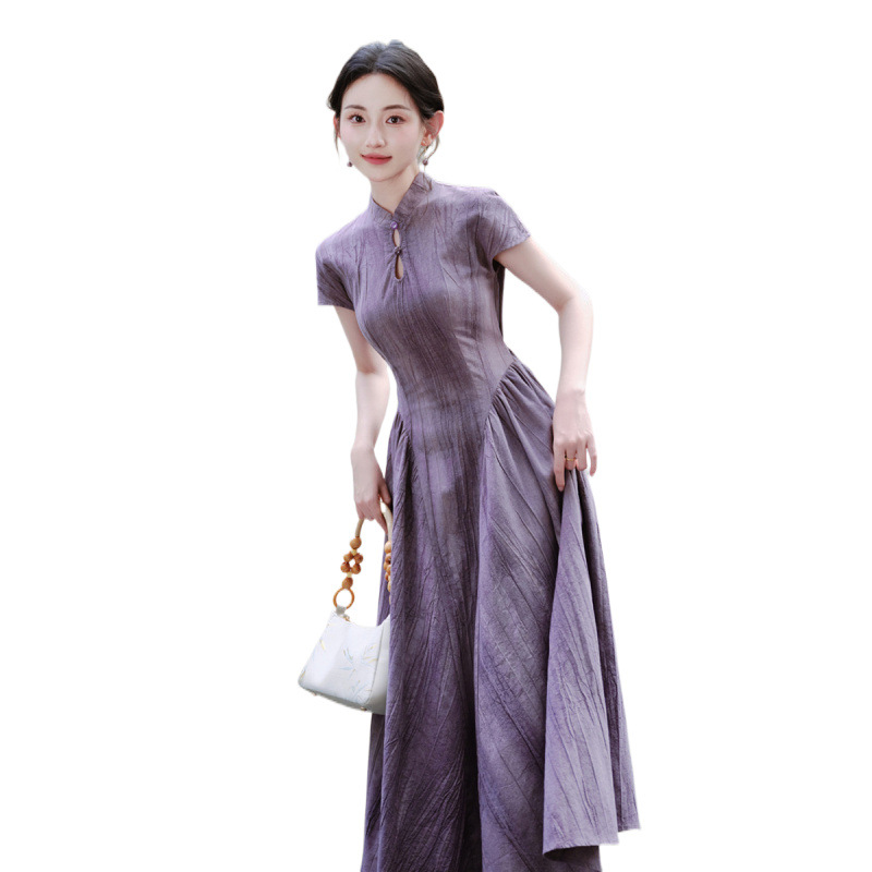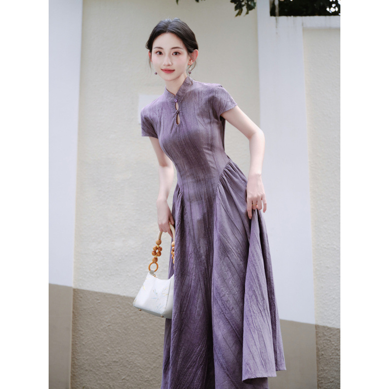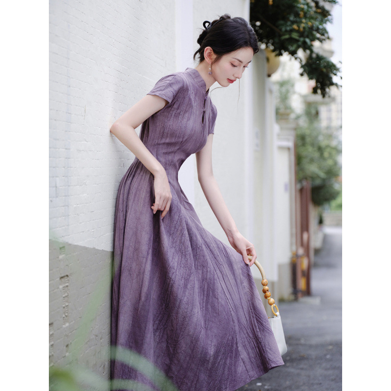 新中式国风裙子日常通勤改良旗袍年轻款复古棉麻扎染连衣裙女夏季