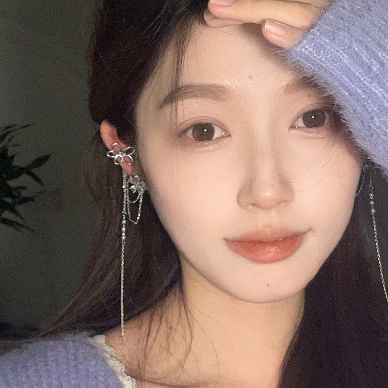 超仙锆石花朵流苏耳骨夹耳钉一体式小众高级感气质耳饰新款