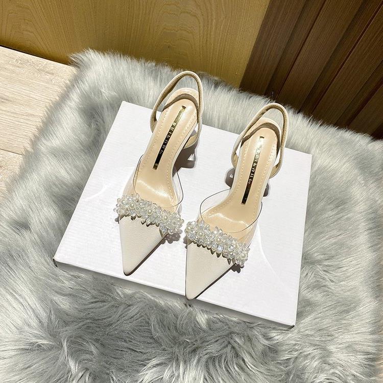 绝美高跟包头凉鞋女春夏季新款法式透明尖头细跟水钻高跟鞋