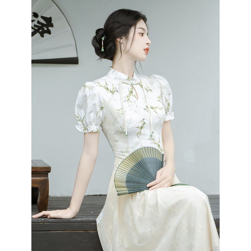 新中式国风素雅清冷感旗袍裙子年轻款现代风连衣裙仙气超仙森系