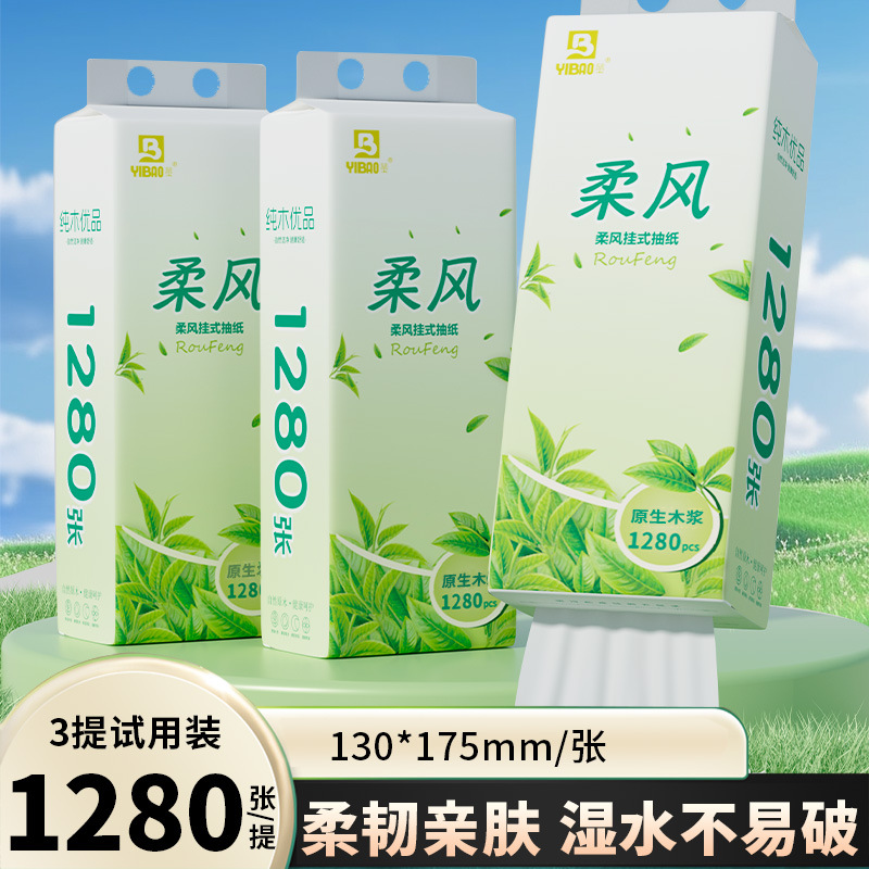 益宝1280悬挂式抽纸卫生纸批发家用抽纸抽取式大包纸巾挂式抽纸