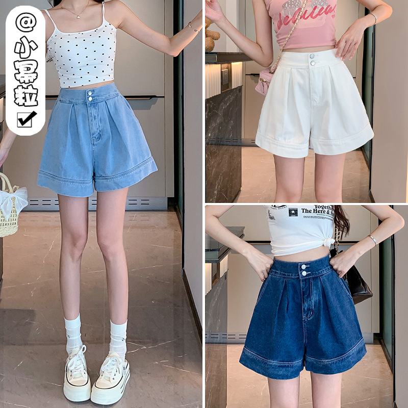 设计感牛仔短裤女夏季高腰显瘦百搭阔腿裤小个子外穿宽松a字热裤