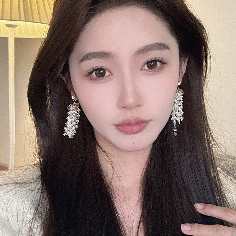 轻奢镂空设计感水晶流苏耳环女气质长款耳坠新款百搭耳饰潮