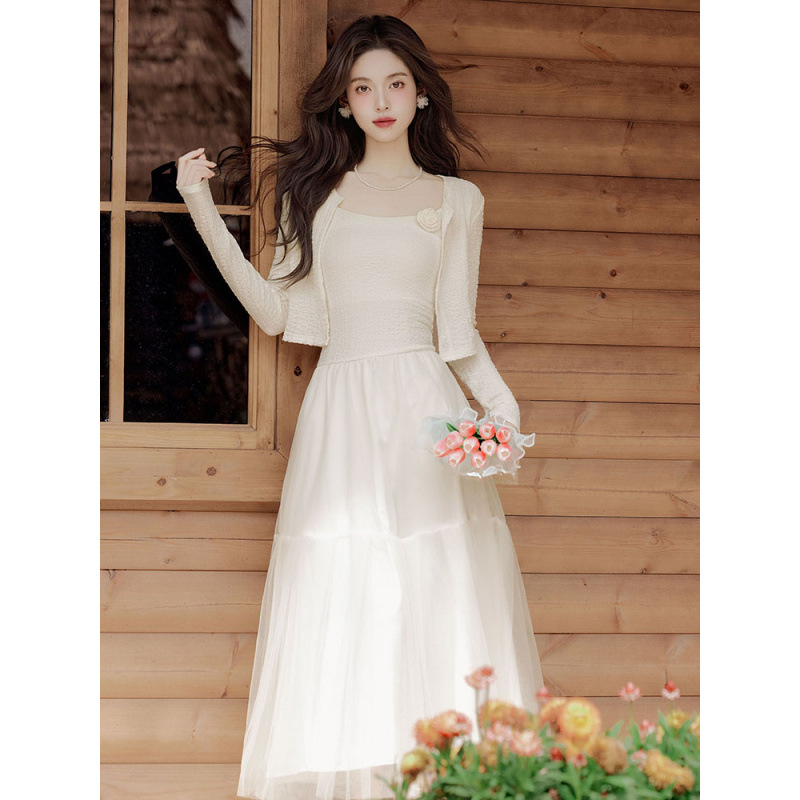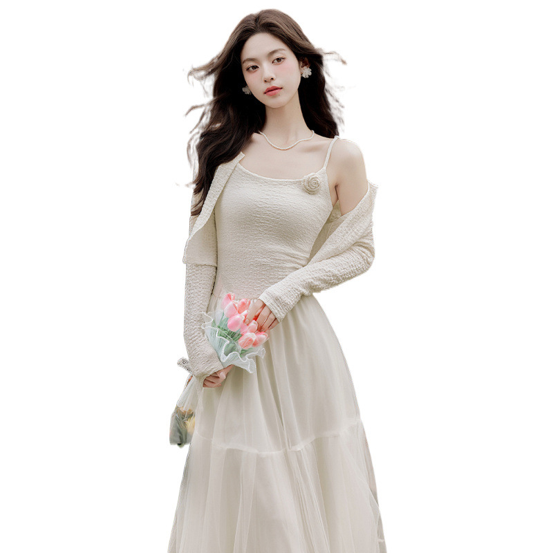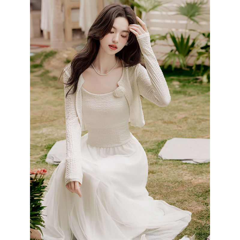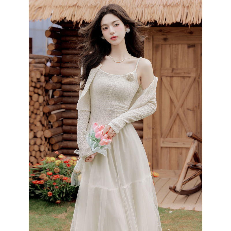 法式网纱拼接吊带连衣裙夏季2025新款温柔风超仙氛围感纱裙两件套
