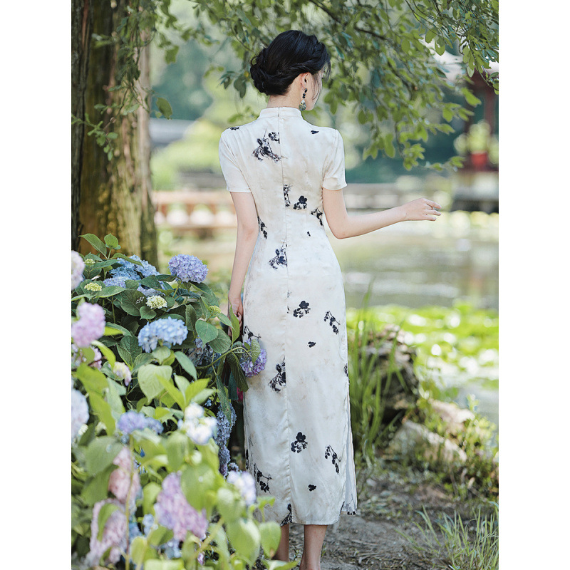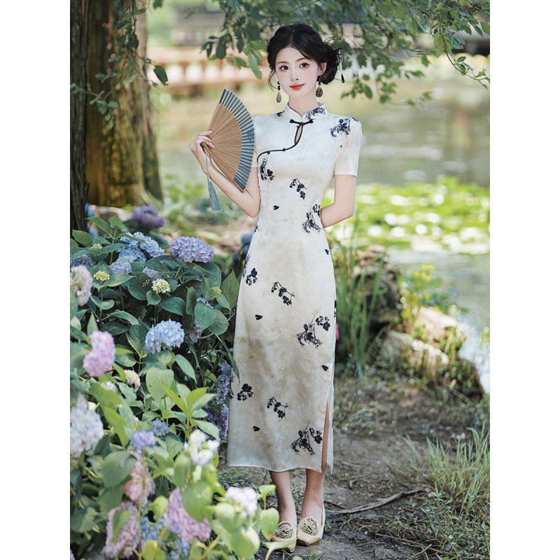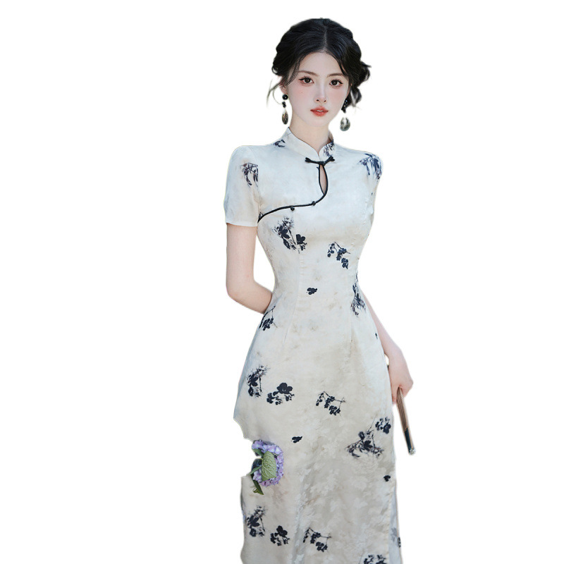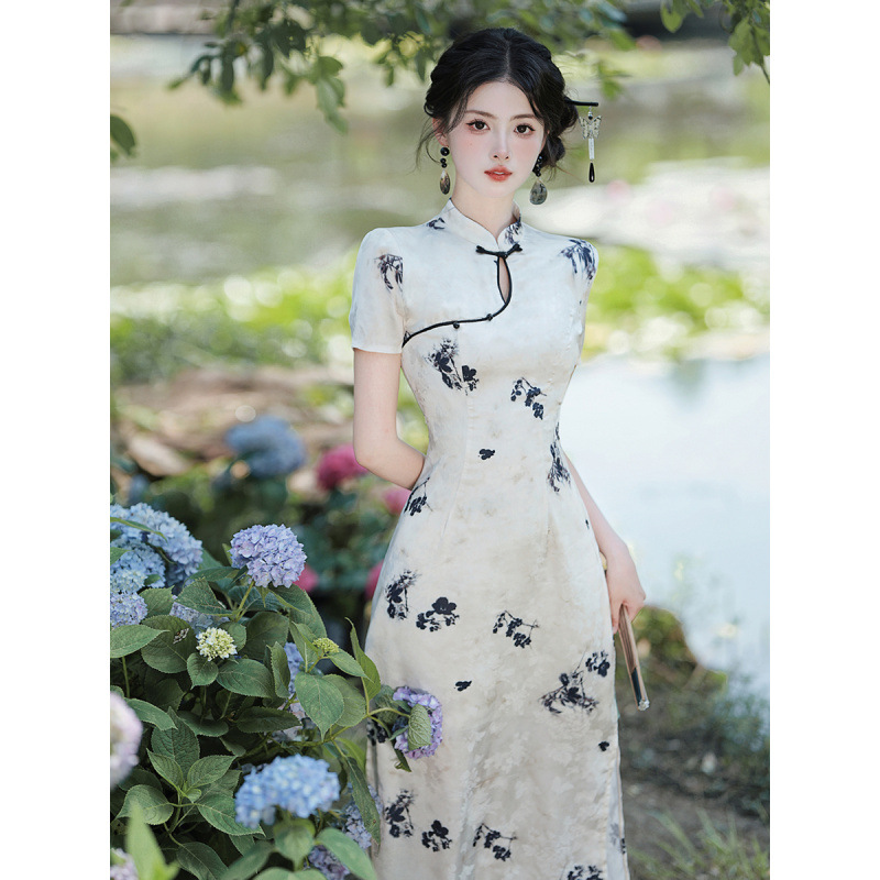 新中式复古暗纹提花改良旗袍连衣裙女2025年新款夏季修身别致长裙