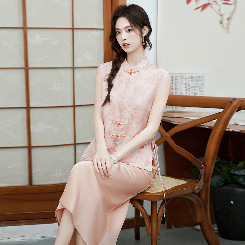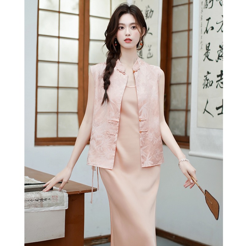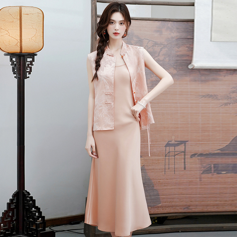 新中式国风套装女装汉元素日常改良旗袍马甲背心连衣裙两件套夏季
