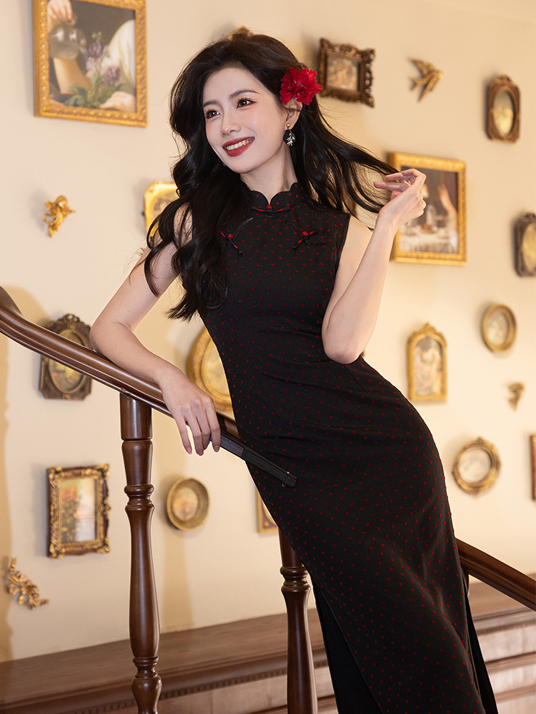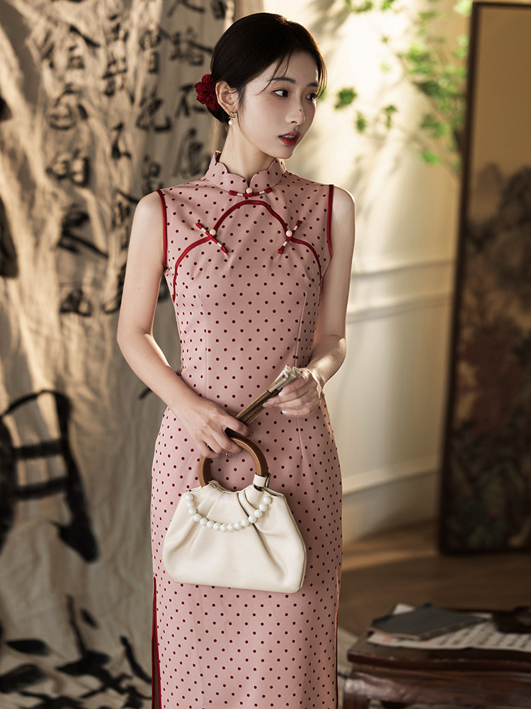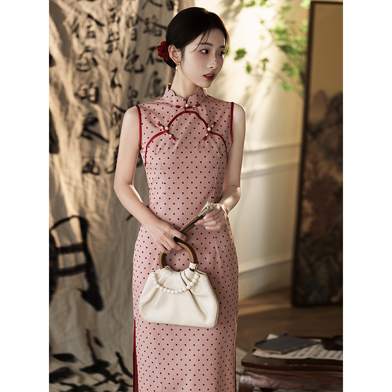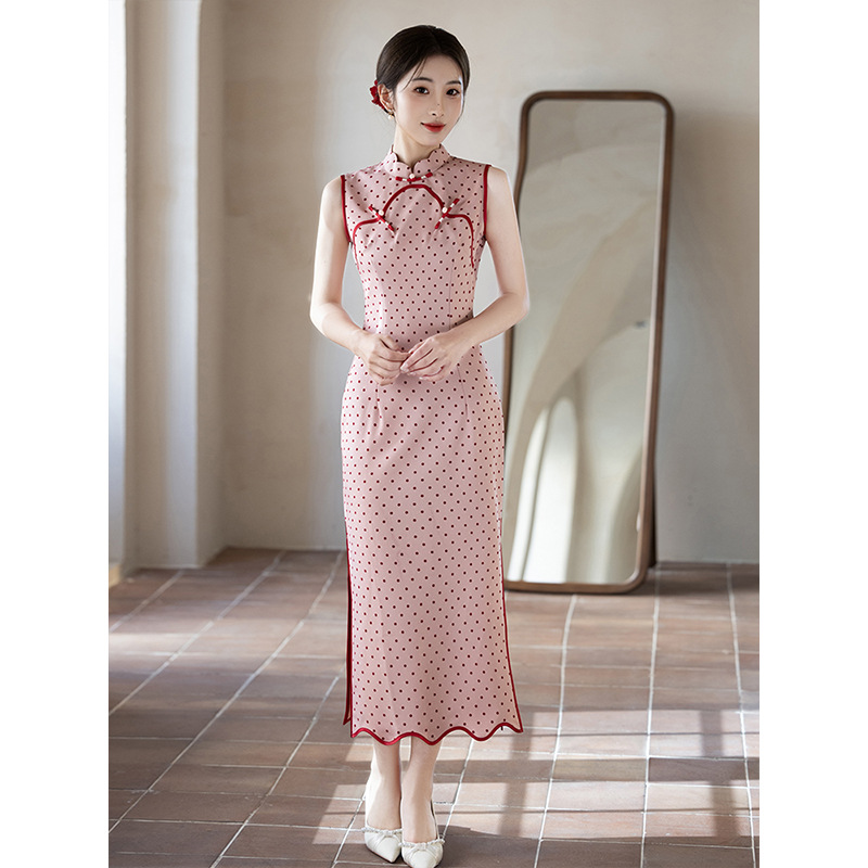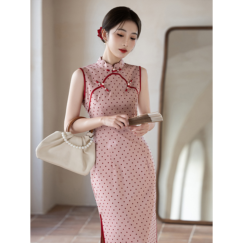 花边领小波点粉色旗袍2025新款夏季无袖修身改良日常可穿新中式女