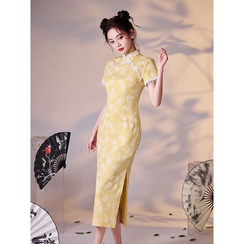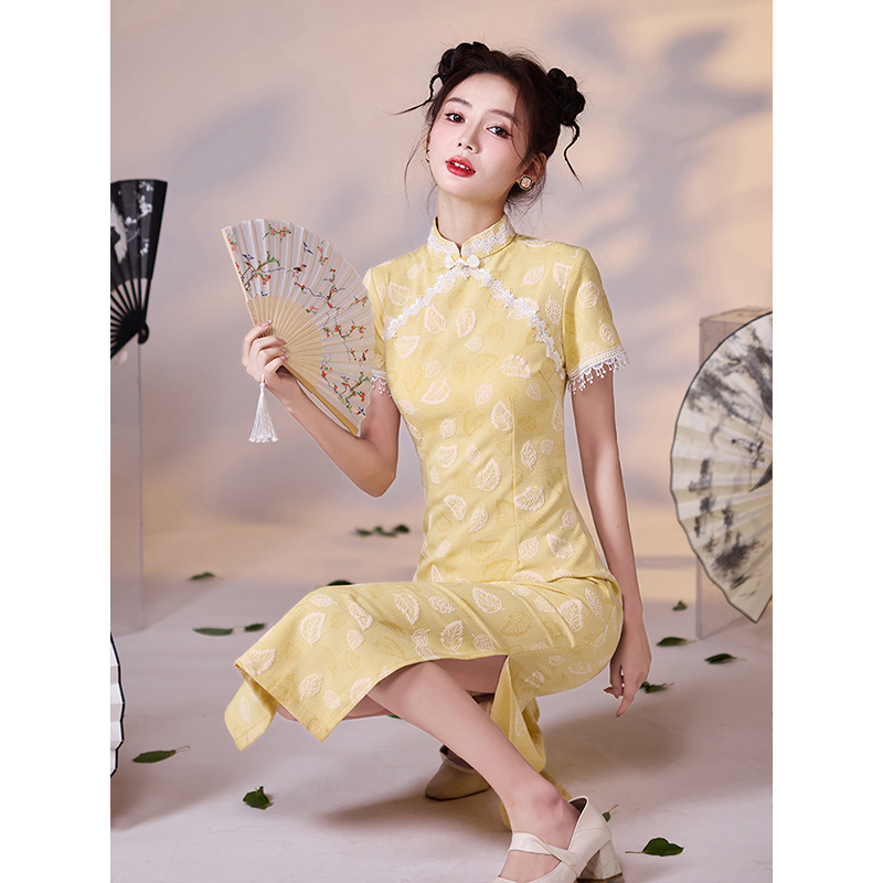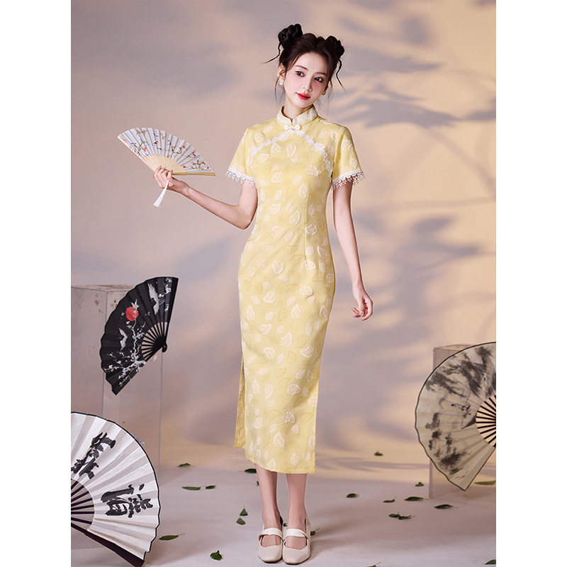 黄色碎花旗袍2025新款高考夏季改良年轻款少女国风新中式日常可穿