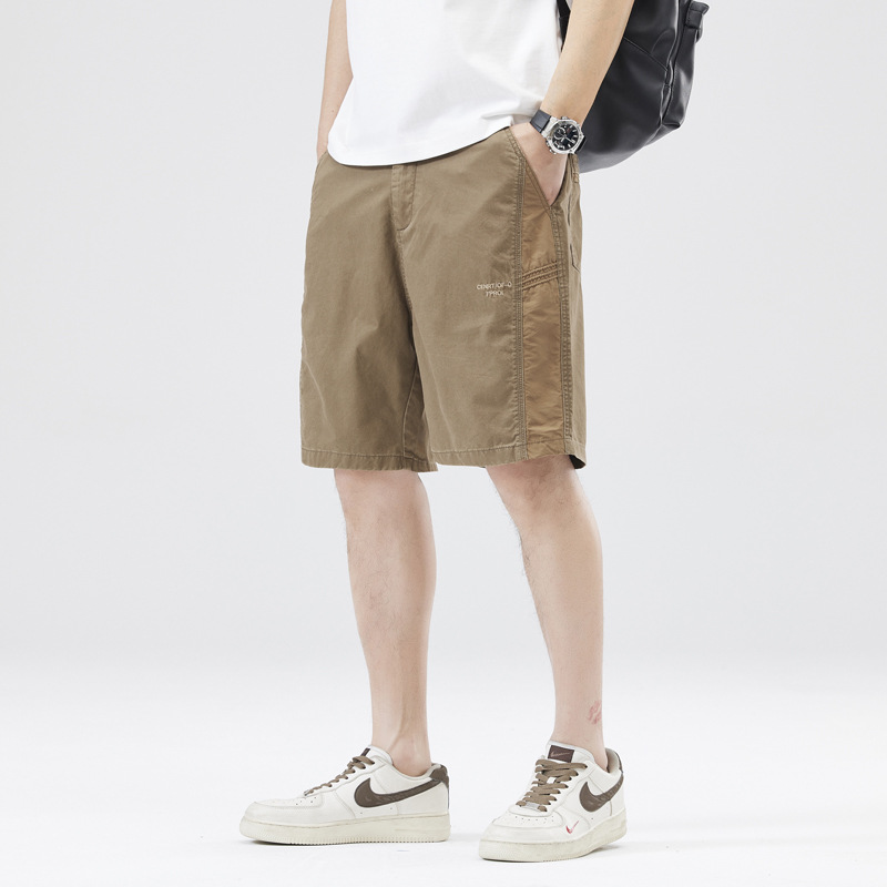 美式工装速干休闲短裤男夏季宽松拼接撞色五分裤潮牌痞帅运动裤子