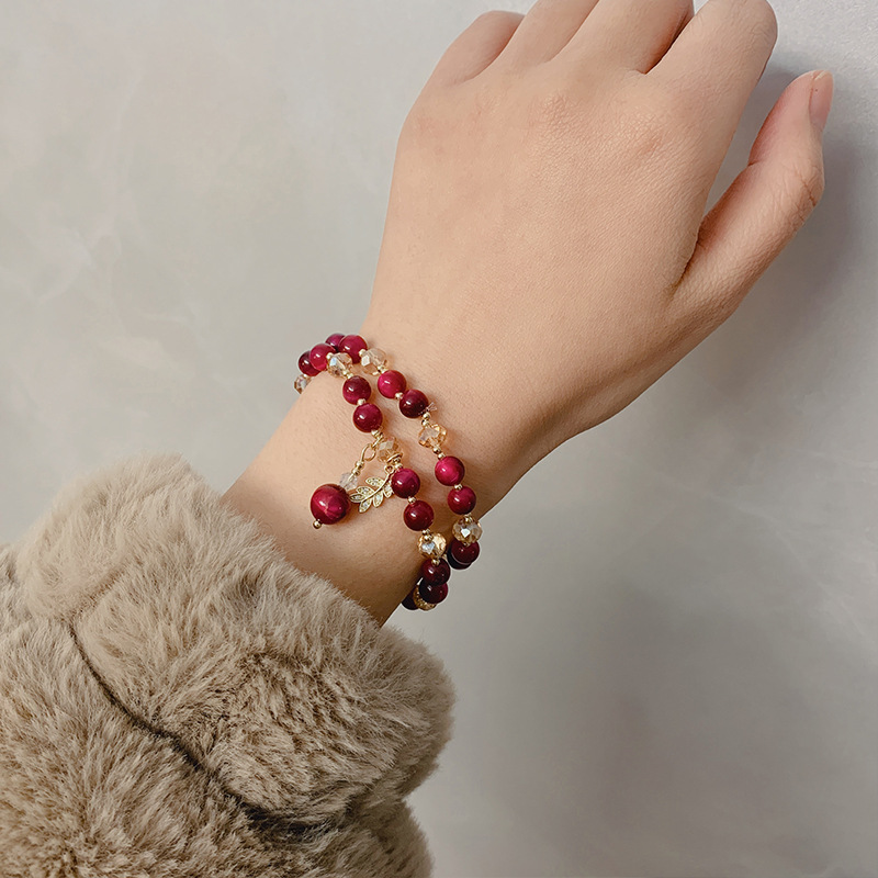 日韩气质森系水晶串珠手链 ins小众设计树叶吊坠多层手串闺蜜手饰