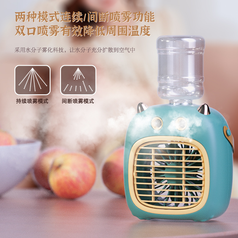新品小怪兽双喷雾风扇便携迷你学生卡通可爱风扇usb静音大风力风