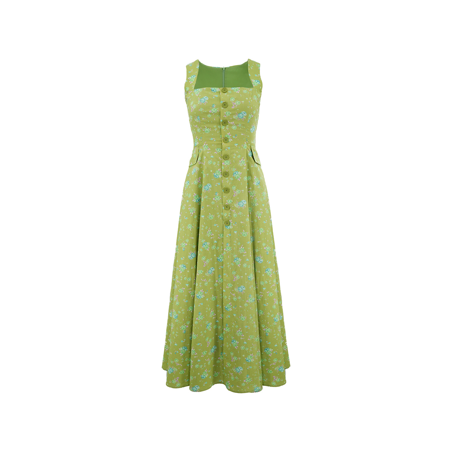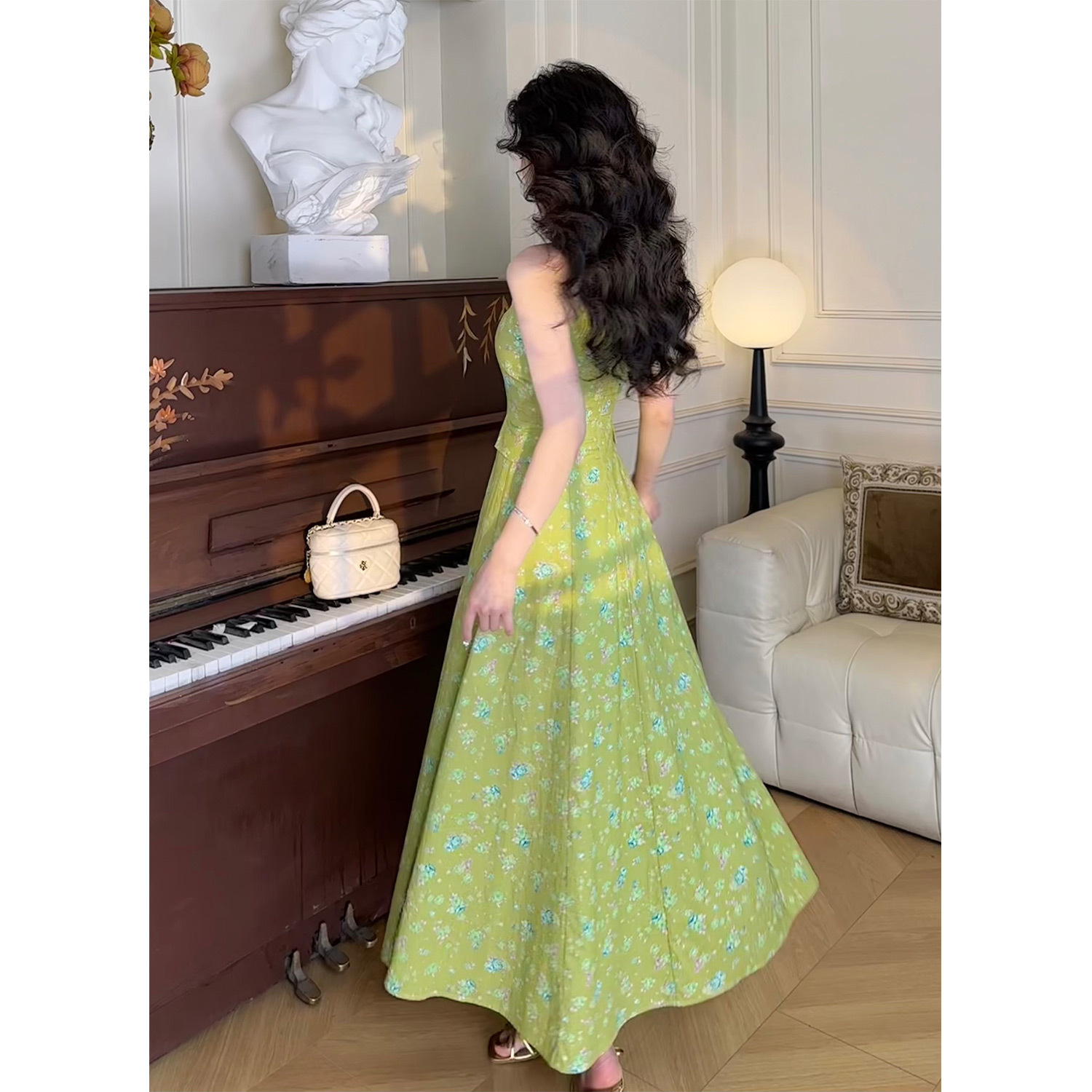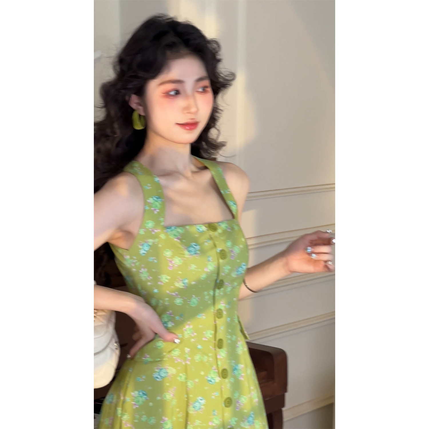 绿色吊带裙气质复古法式温柔风高腰显瘦连衣裙女夏SS