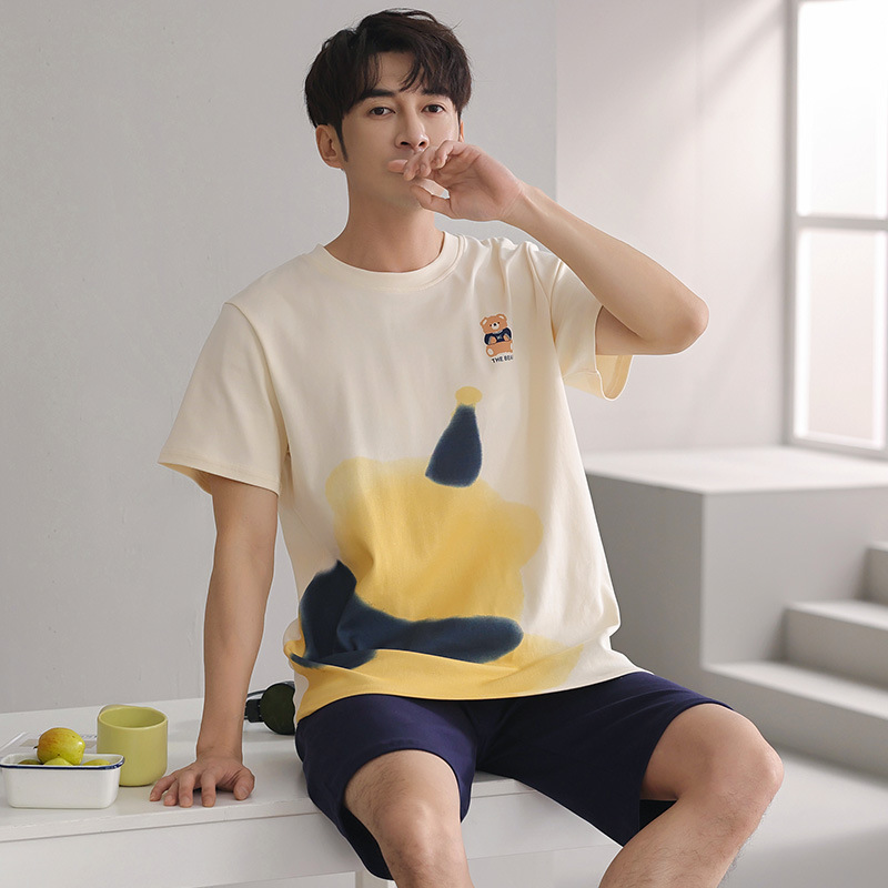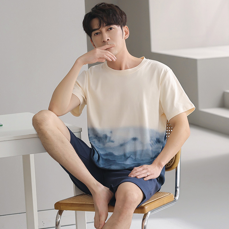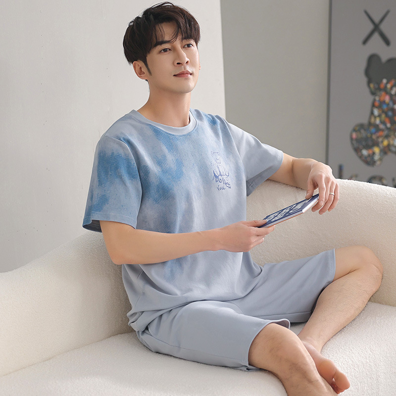 纯棉短袖短裤睡衣男士新款春夏天薄套装青少年圆领修身家居服