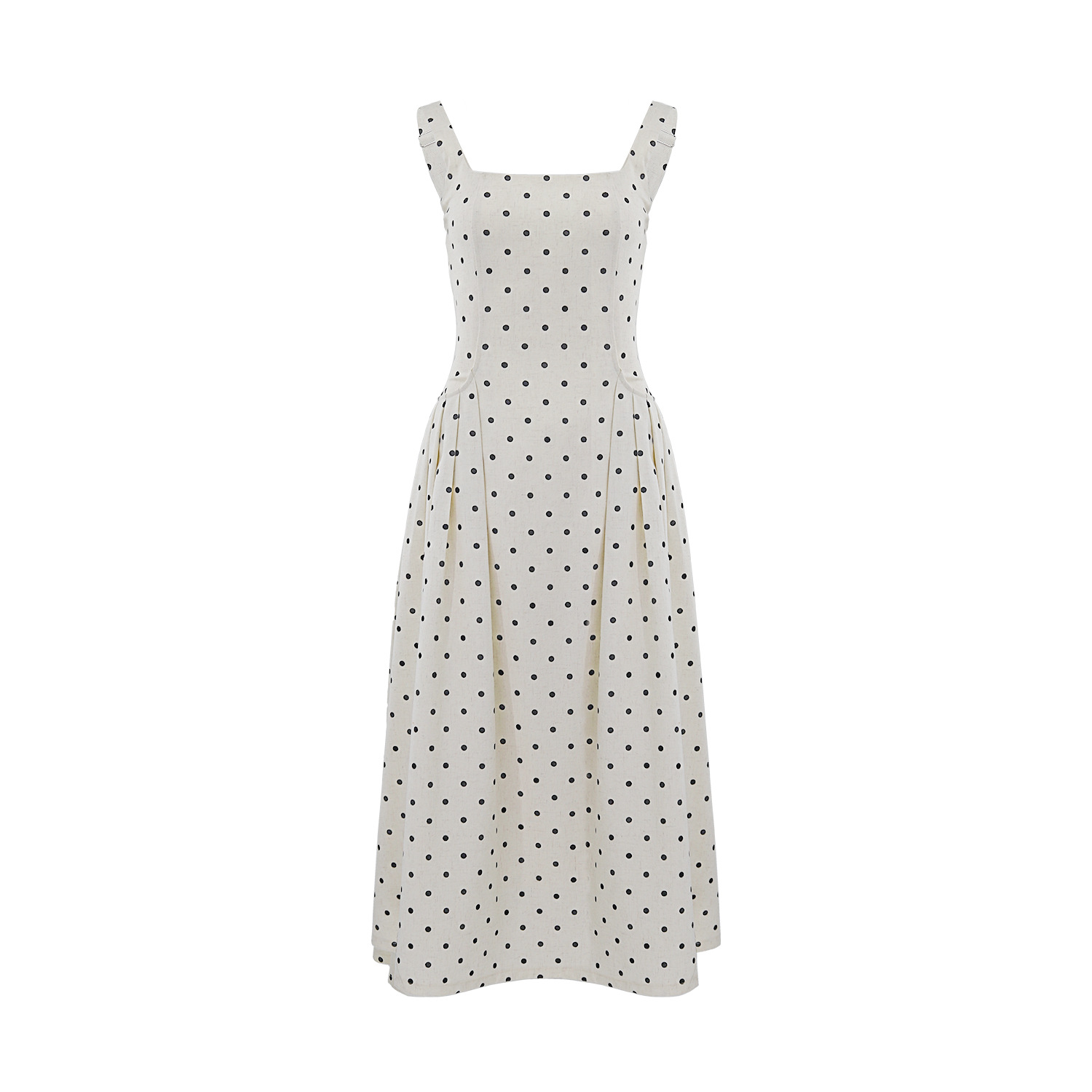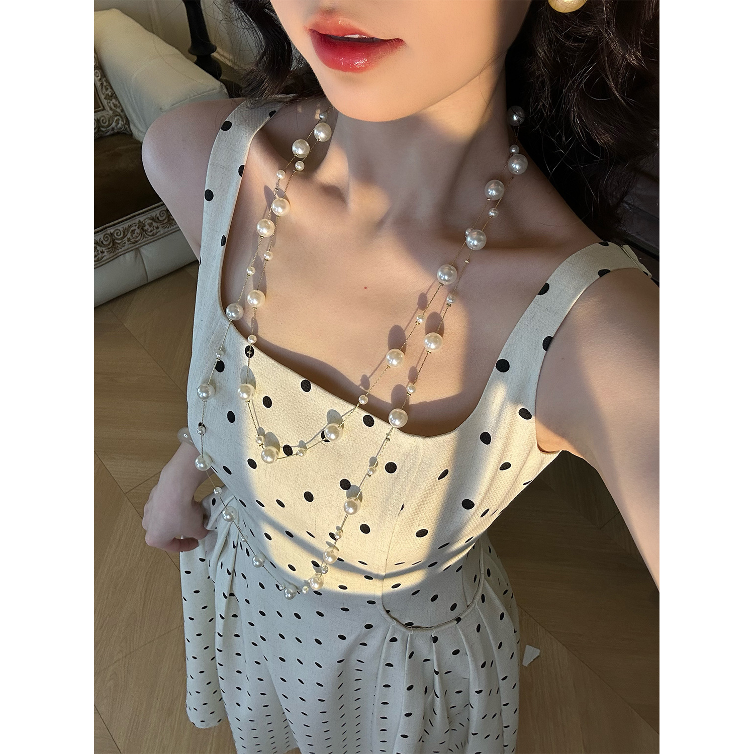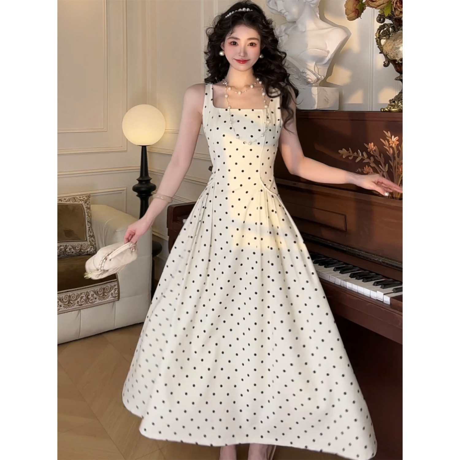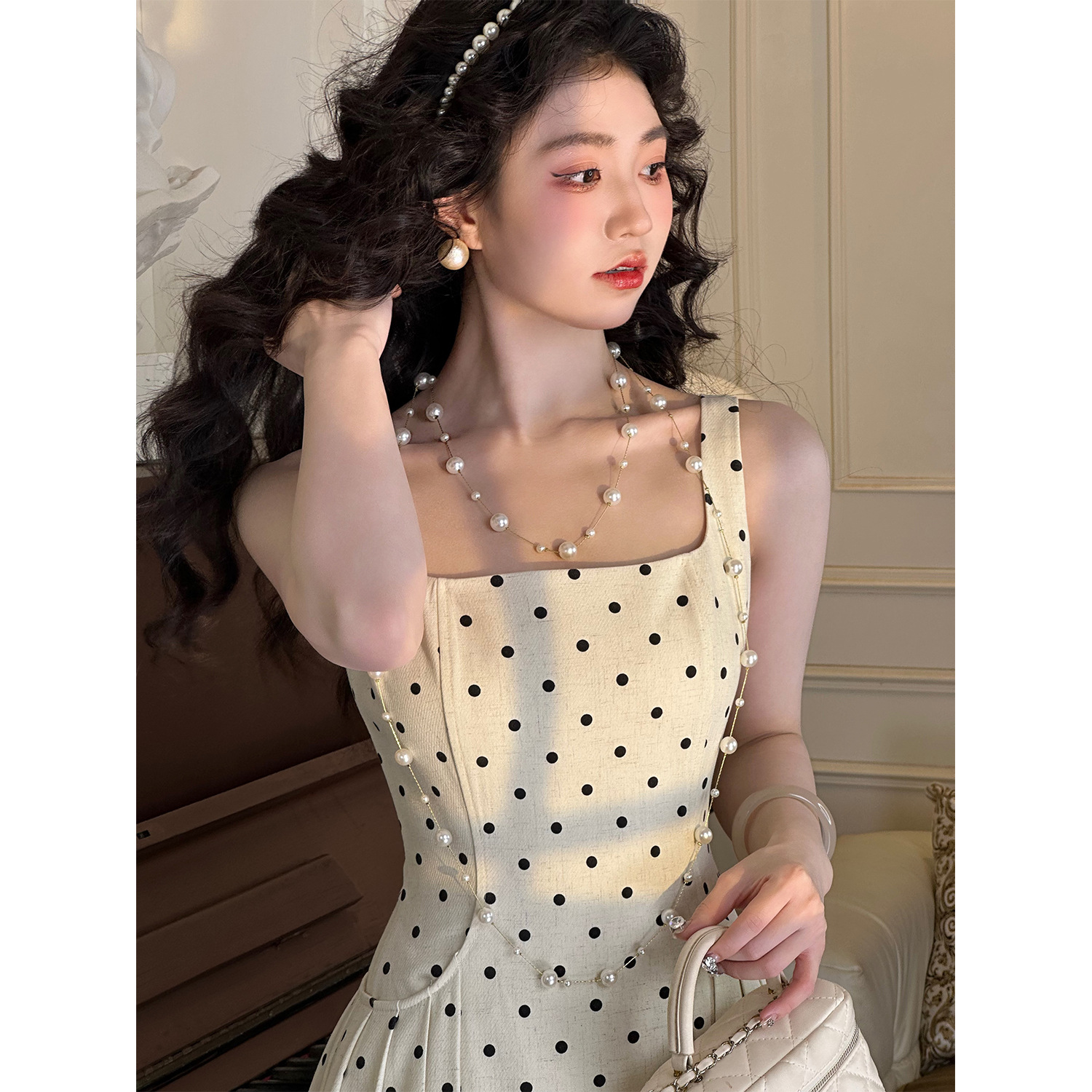 优雅法式温柔风桔梗方领波点连衣裙复古气质显瘦吊带裙SS