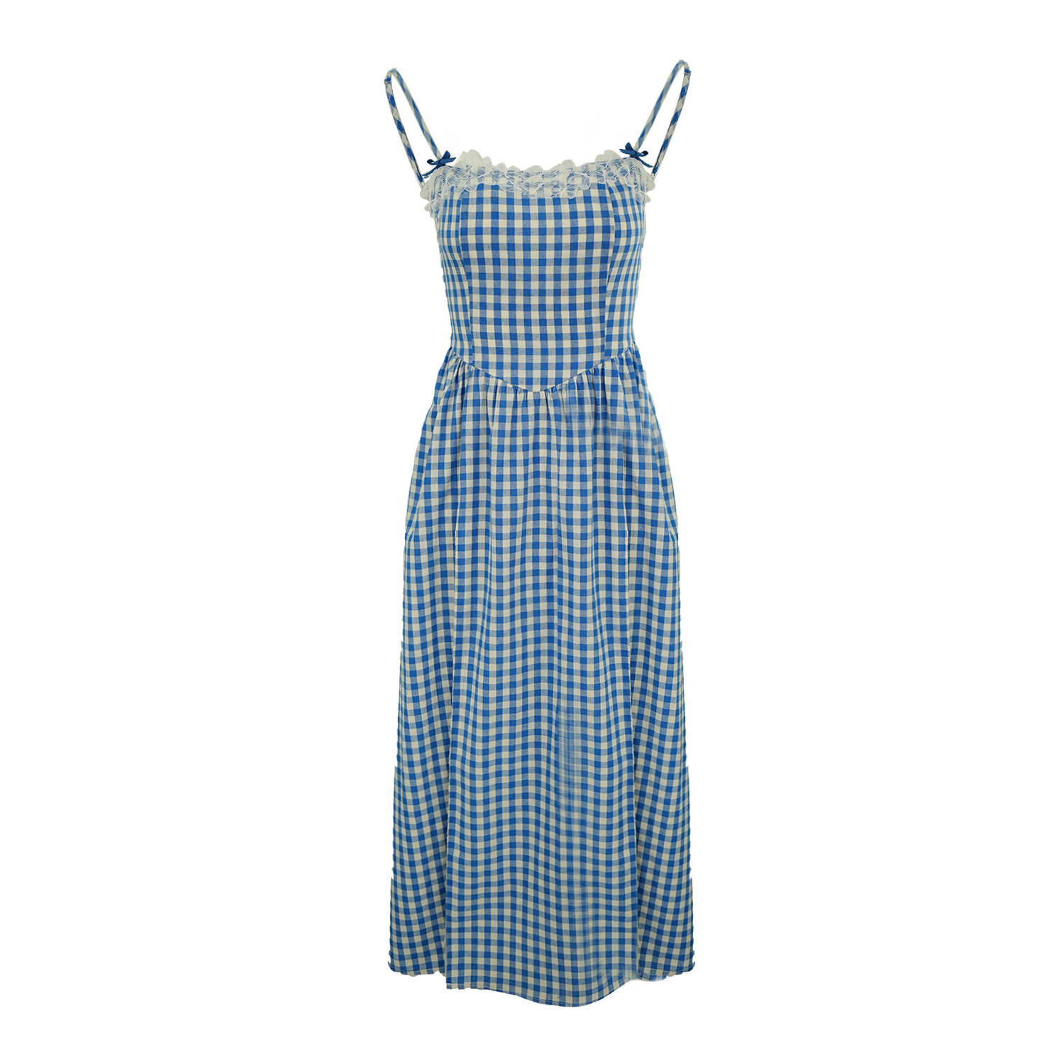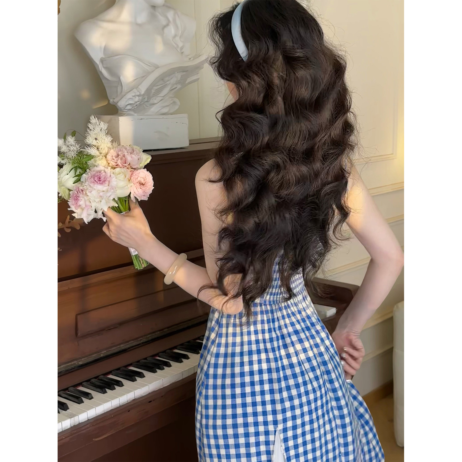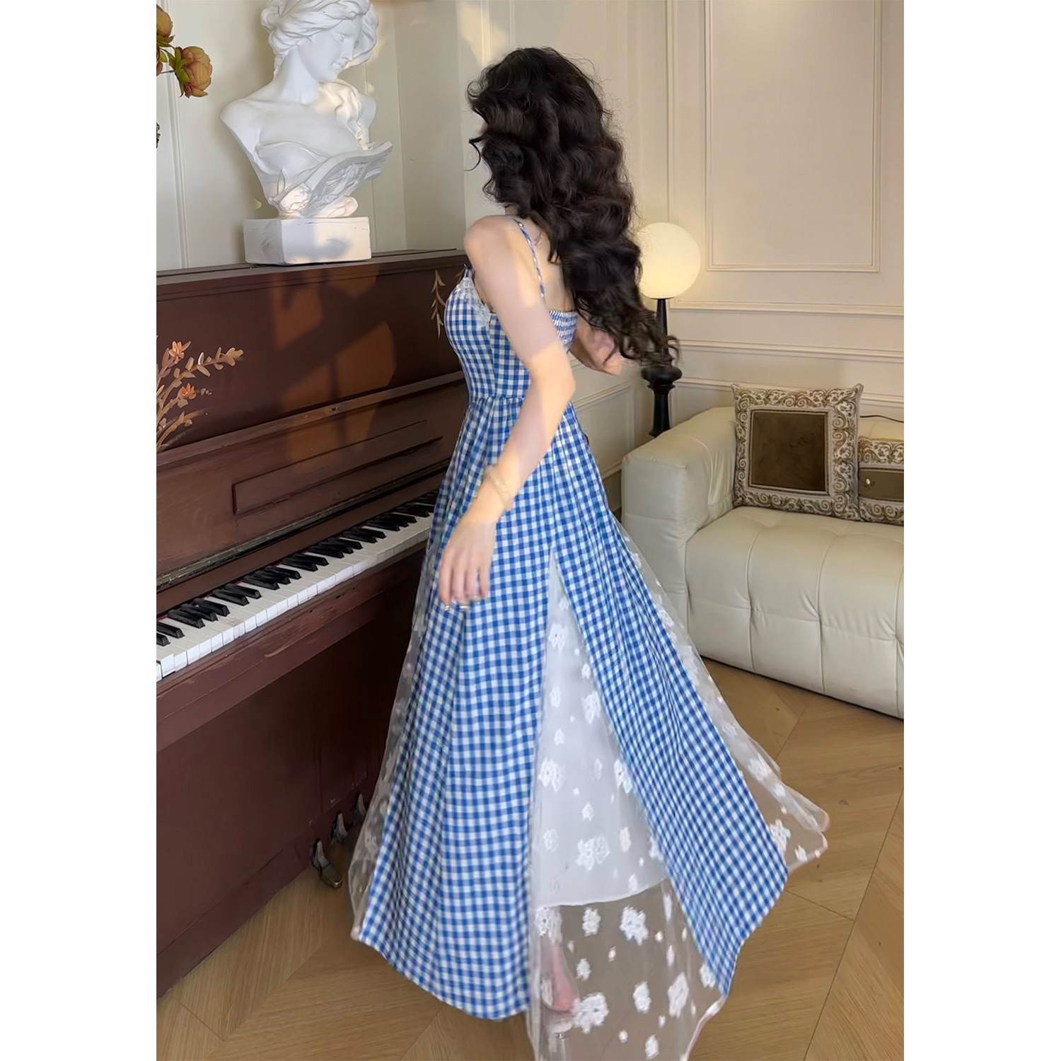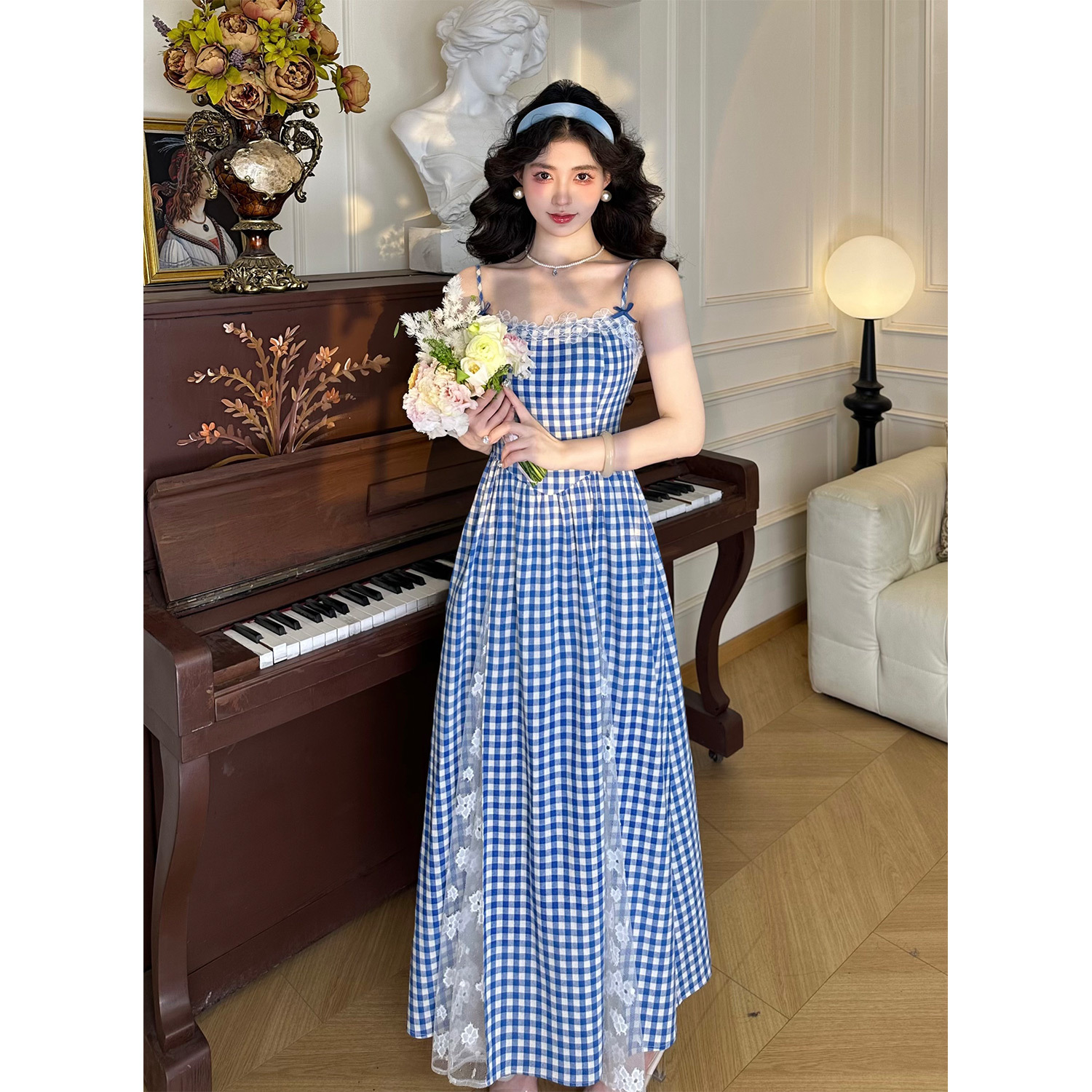 法式高级感格子连衣裙女夏2025新款气质a字收腰无袖长裙SS