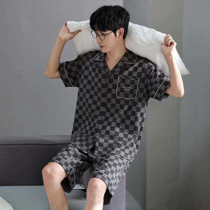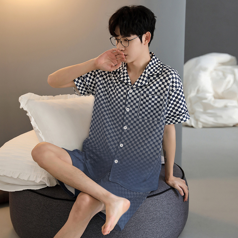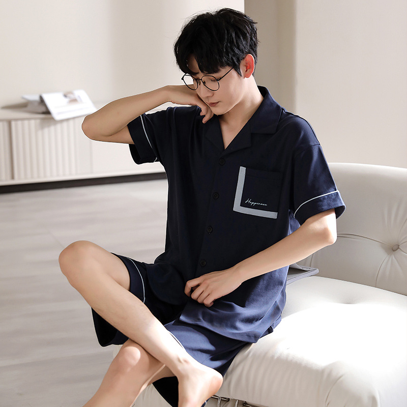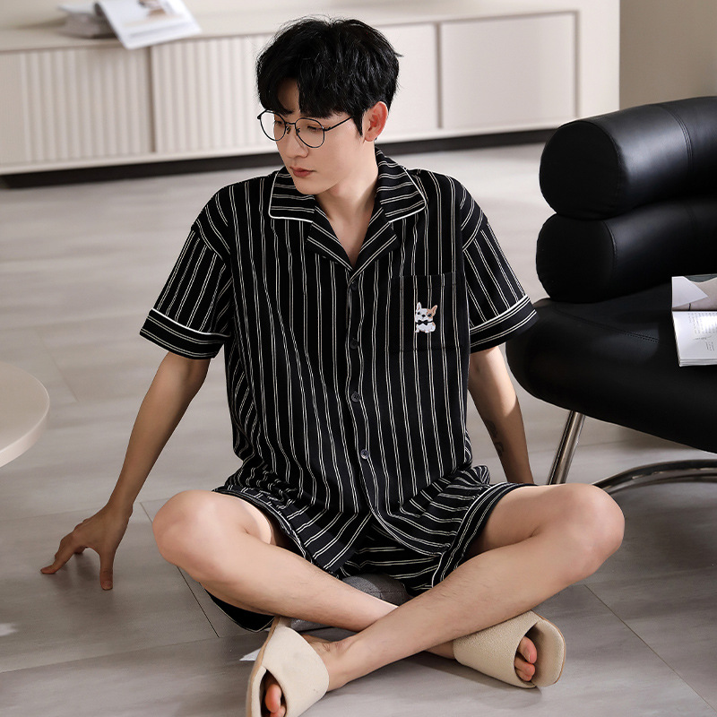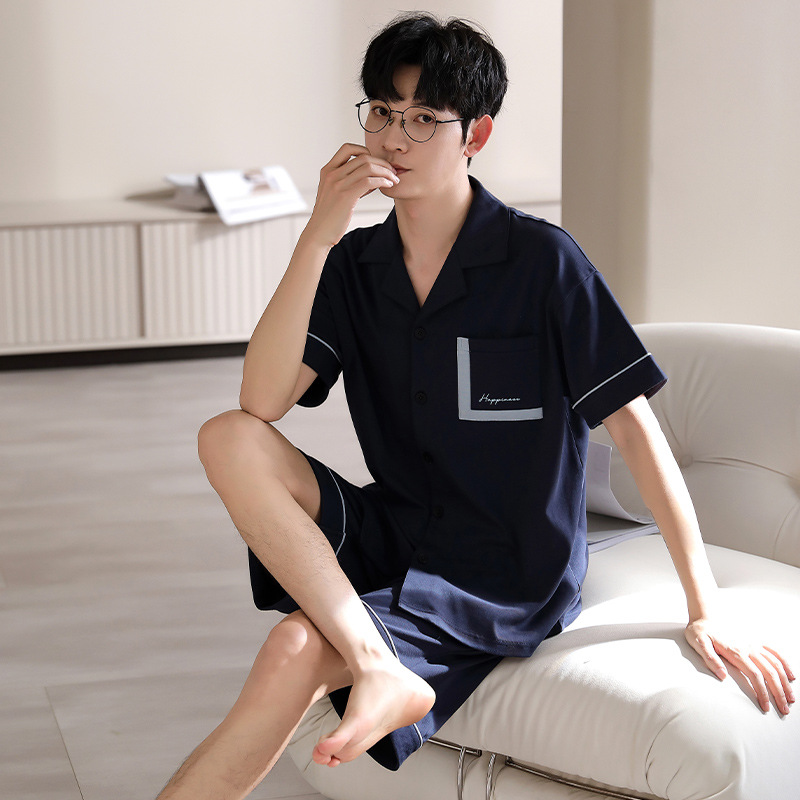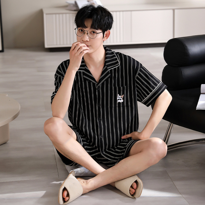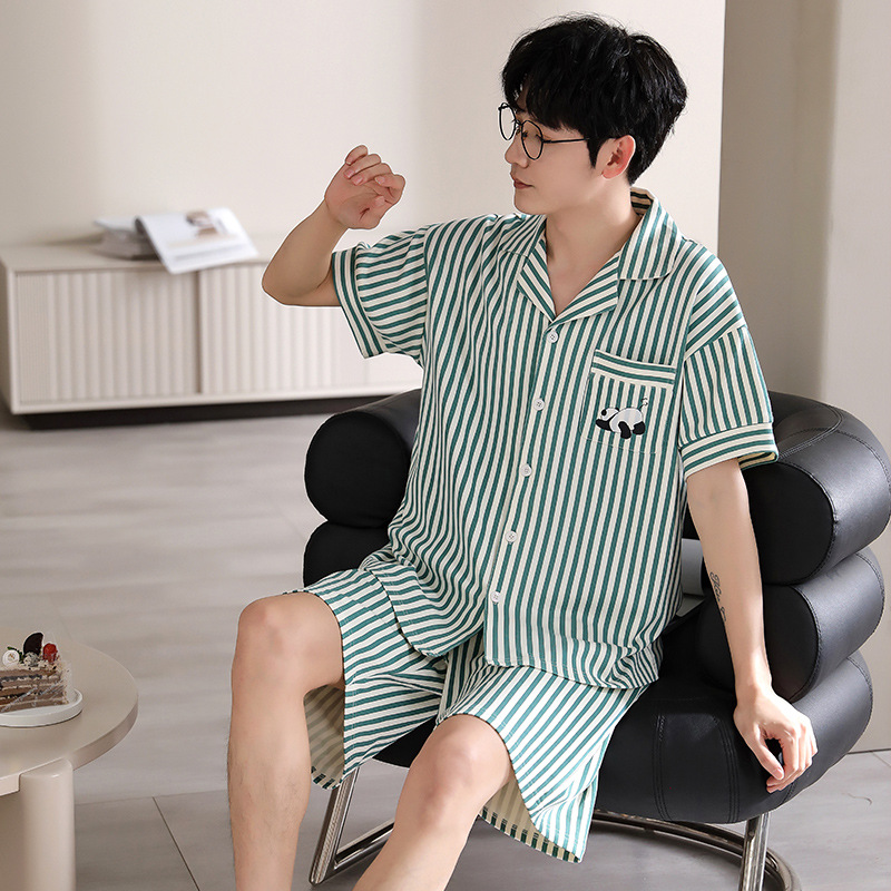 纯棉睡衣男士夏季短袖短裤开衫家居服春夏天薄款大码套装