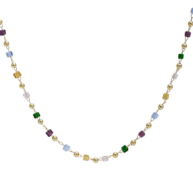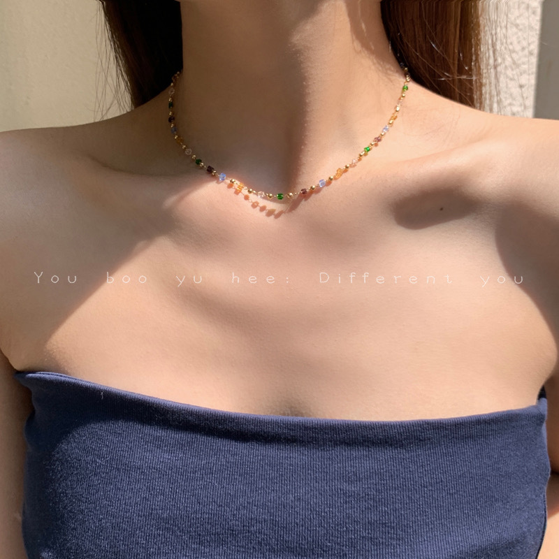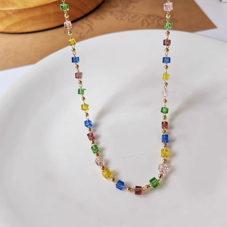 彩色水晶项链女夏天轻奢小众设计高级感森系小串珠颈链锁骨链配饰
