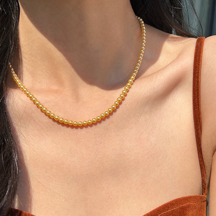 方糖家浅金色小米粒正圆珍珠锁骨链高级感小众时尚百搭气质项链