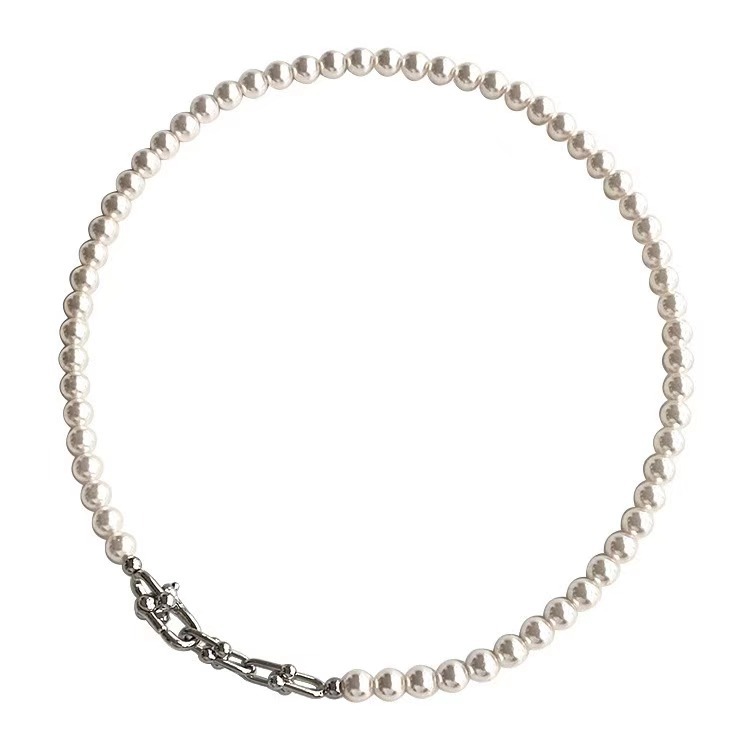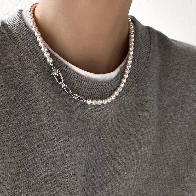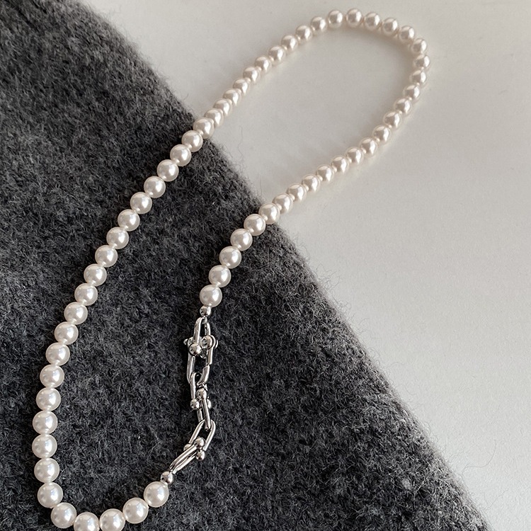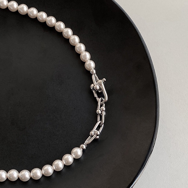 DOUDOUSTORE原创保色高级强光施家珍珠链条拼接项链锁骨链毛衣链