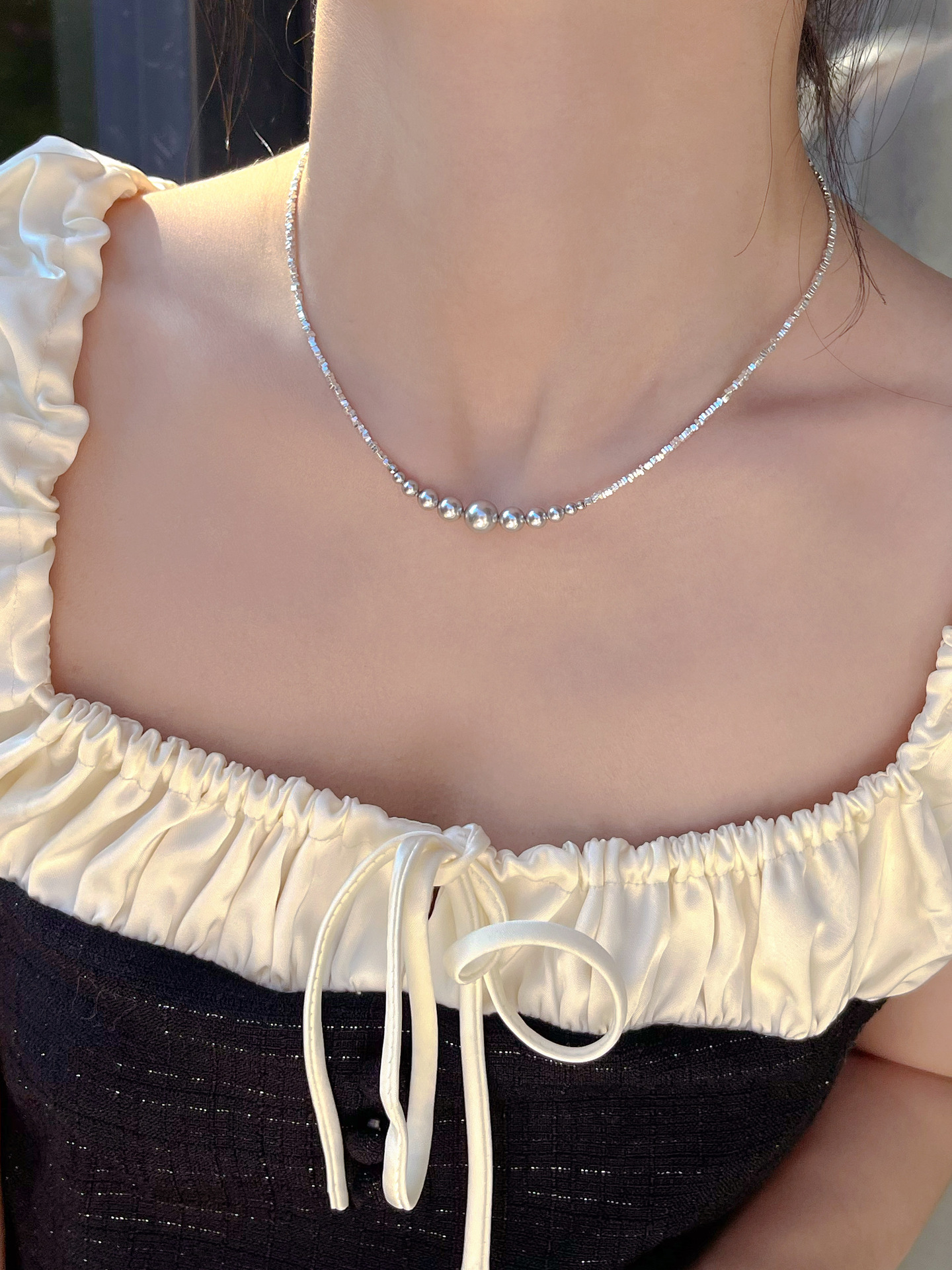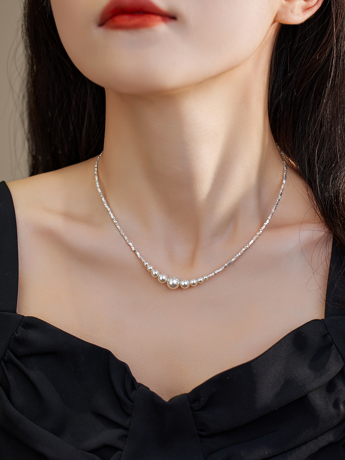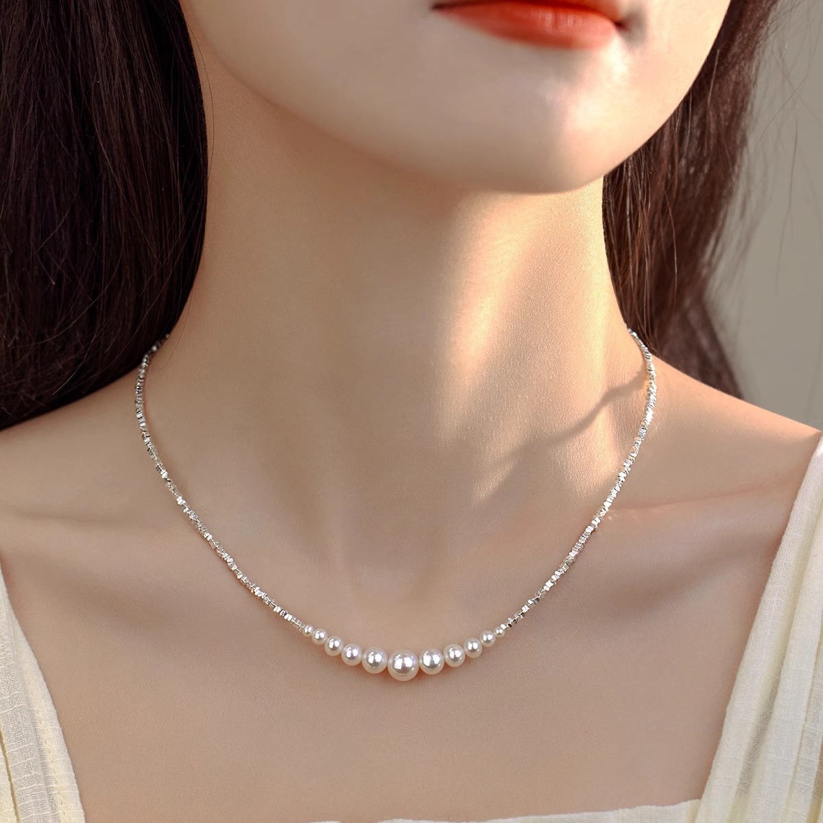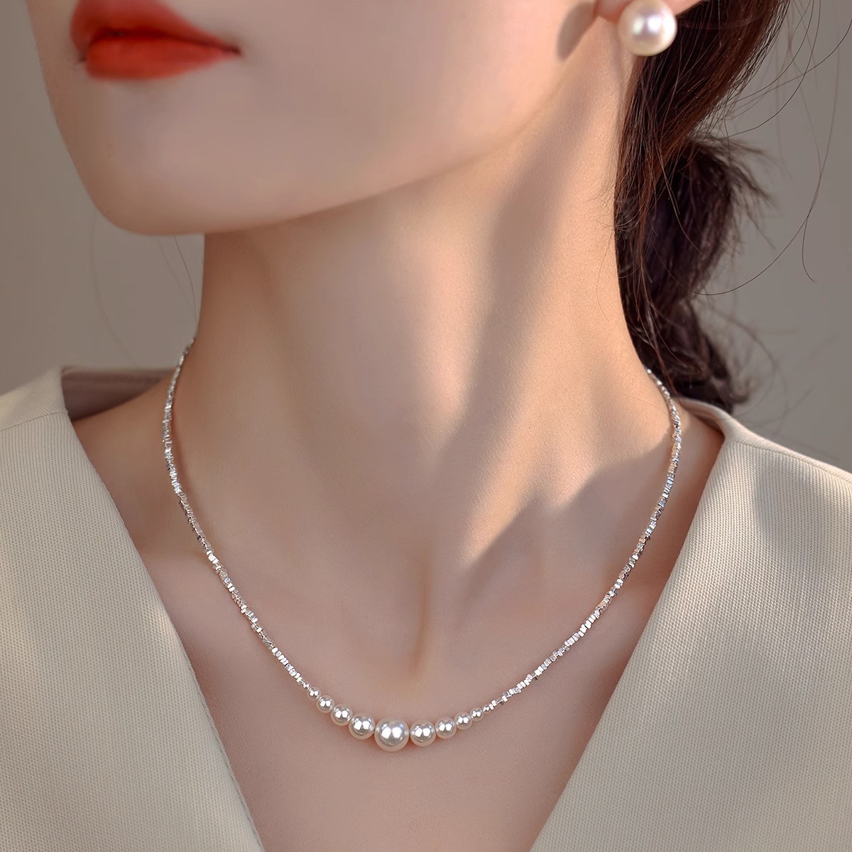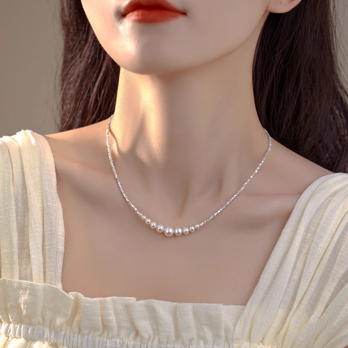 渐变微笑珍珠碎银子轻奢高级感气质项链锁骨链女