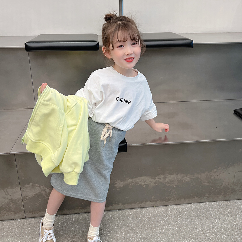 女童短袖棉质t恤字母印花透气吸汗潮范中大童女孩宽松圆领上衣INs