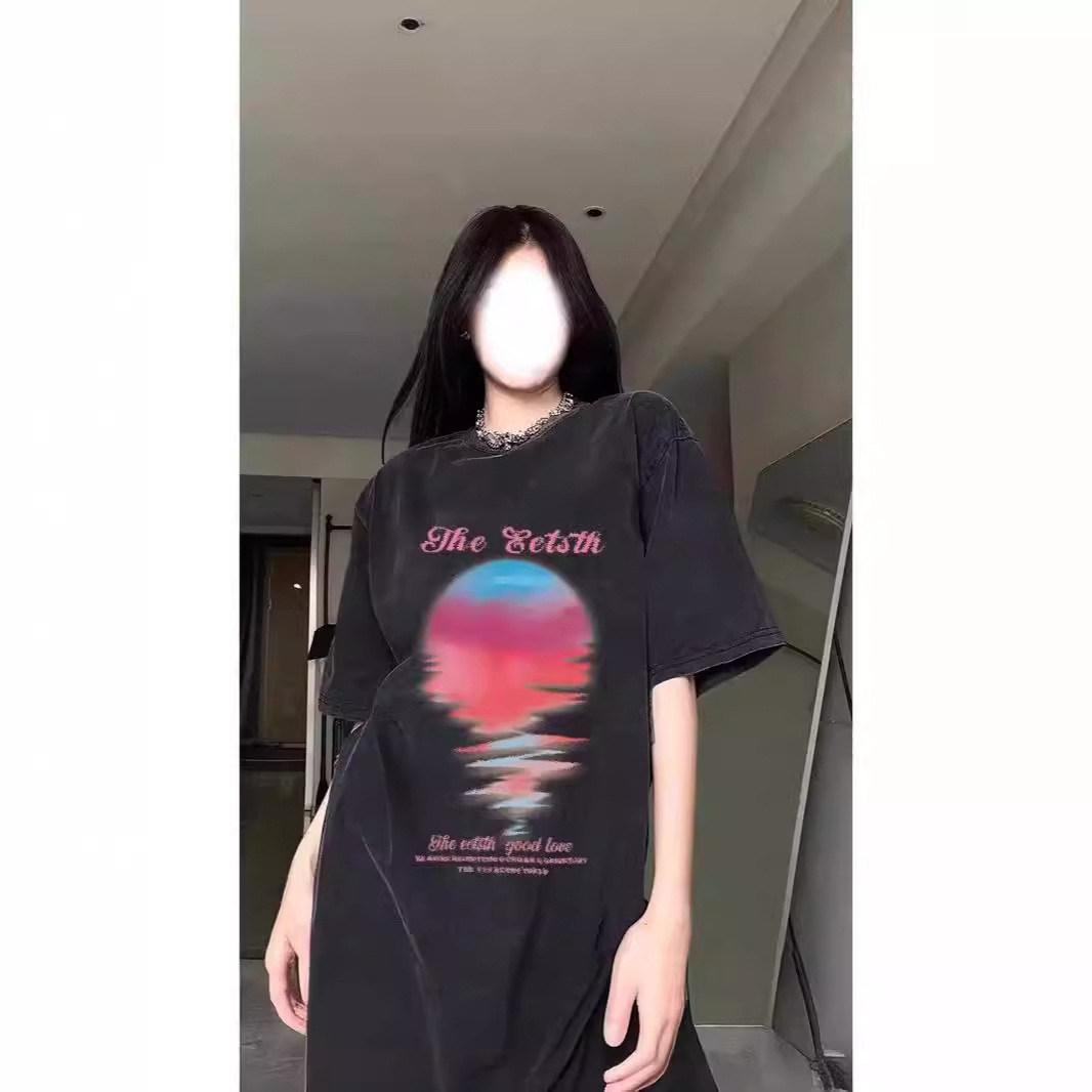 欧美复古水洗做旧纯棉t恤女夏季短袖宽松大码半袖情侣装上衣潮牌