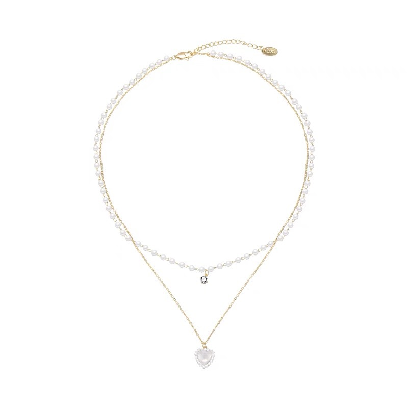 夏季珍珠双层爱心项链女轻奢高级设计小众叠戴精致锁骨链颈链ins