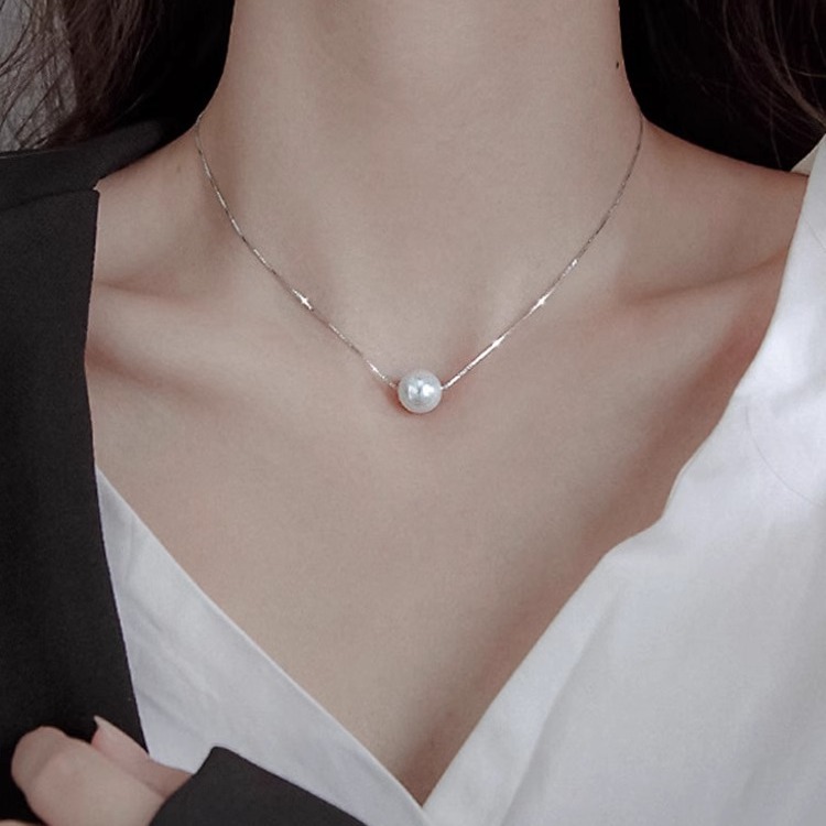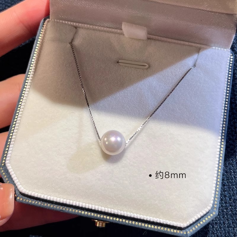 一颗珍珠项链S925纯银女款天然淡水单颗珍珠吊坠轻奢小众女生