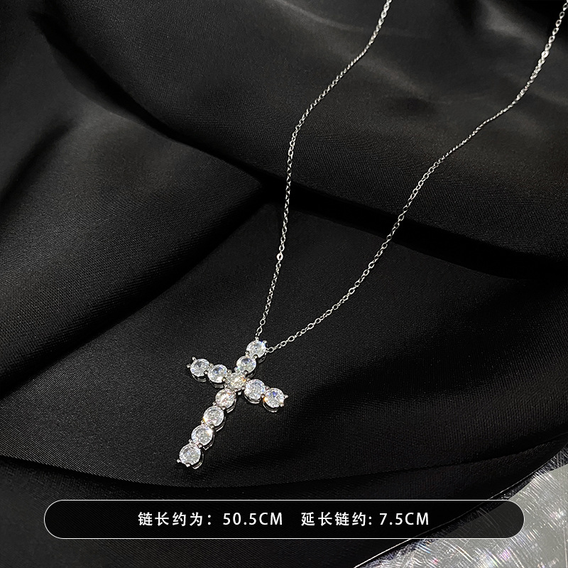 年新款镶钻十字架钛钢毛衣项链女轻奢卫衣链高级感锁骨链配饰