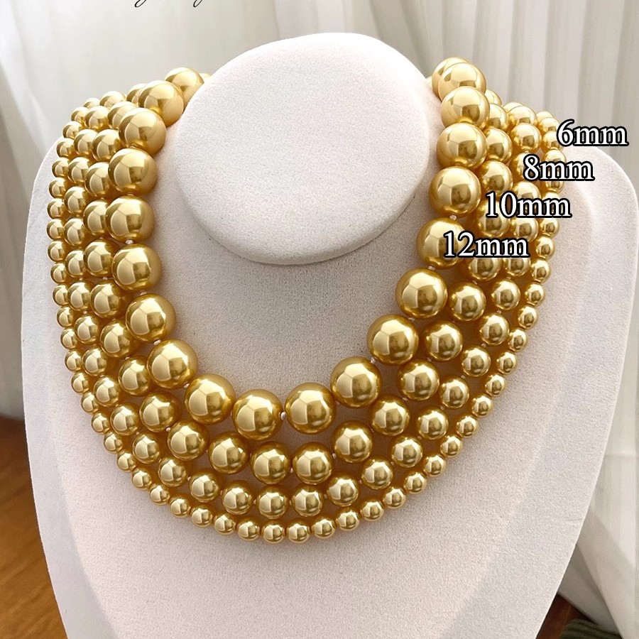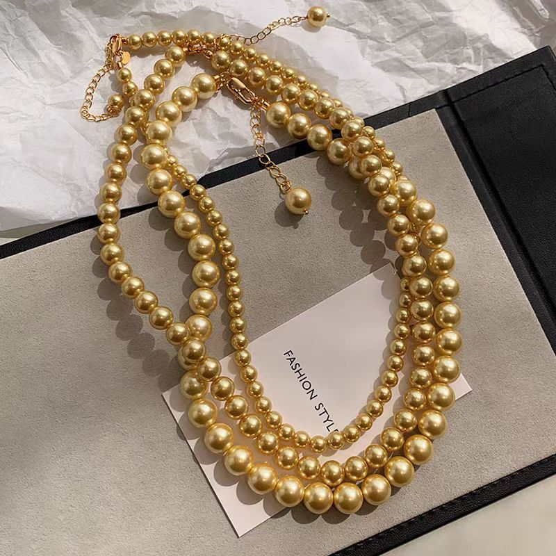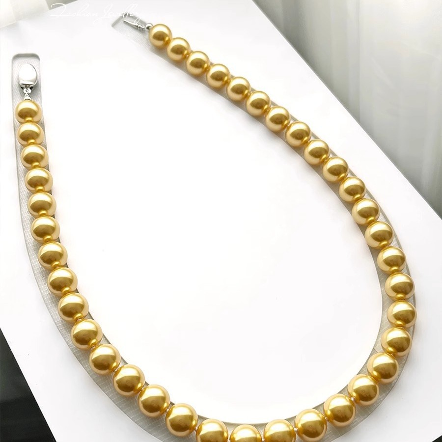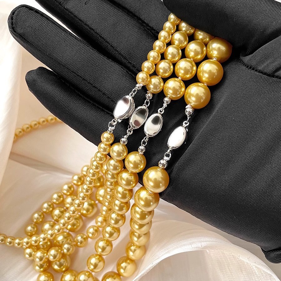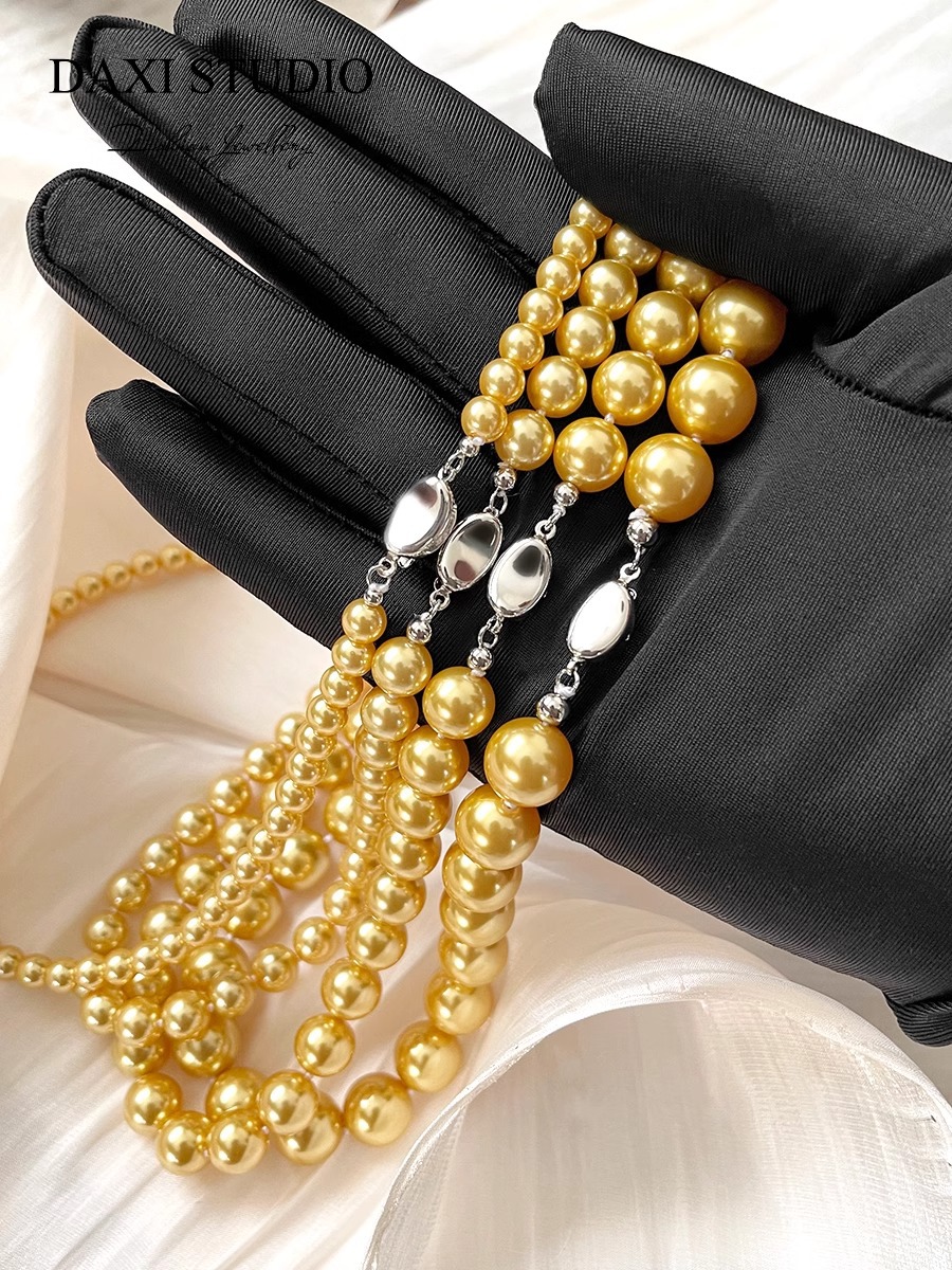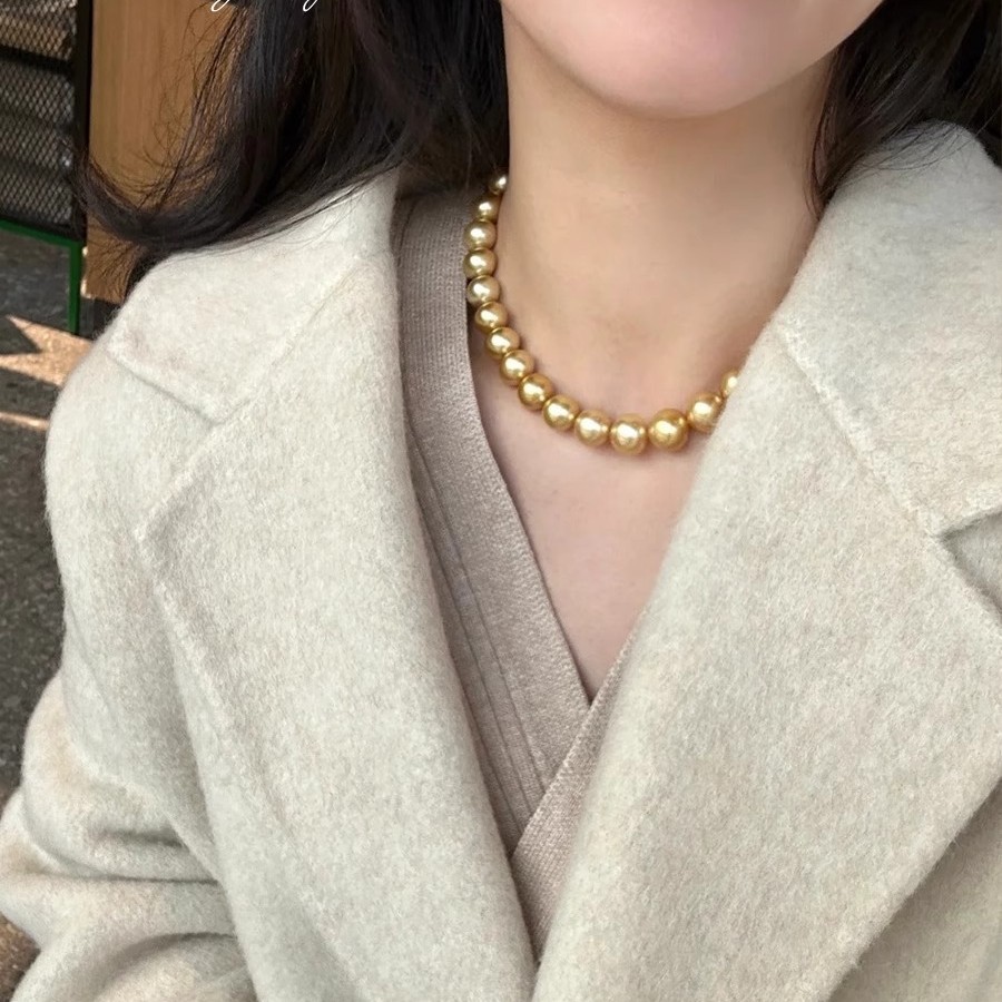 倪妮同款南洋金珠施家人造正圆珍珠项链女轻奢高级感金色锁骨颈链