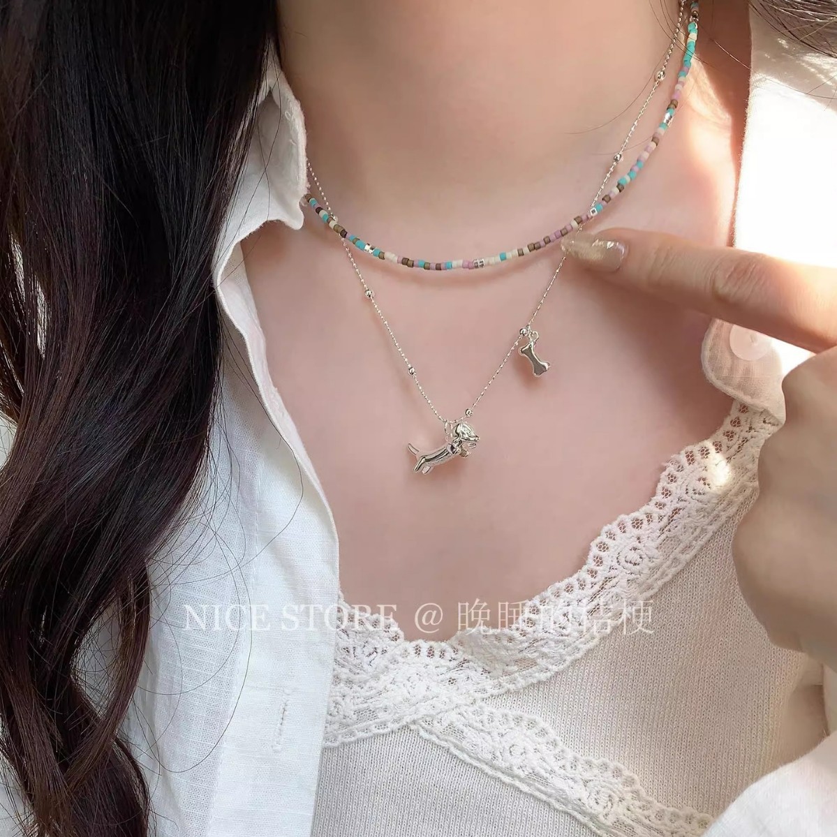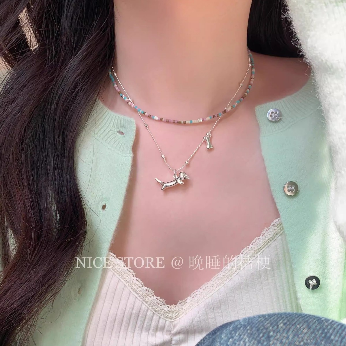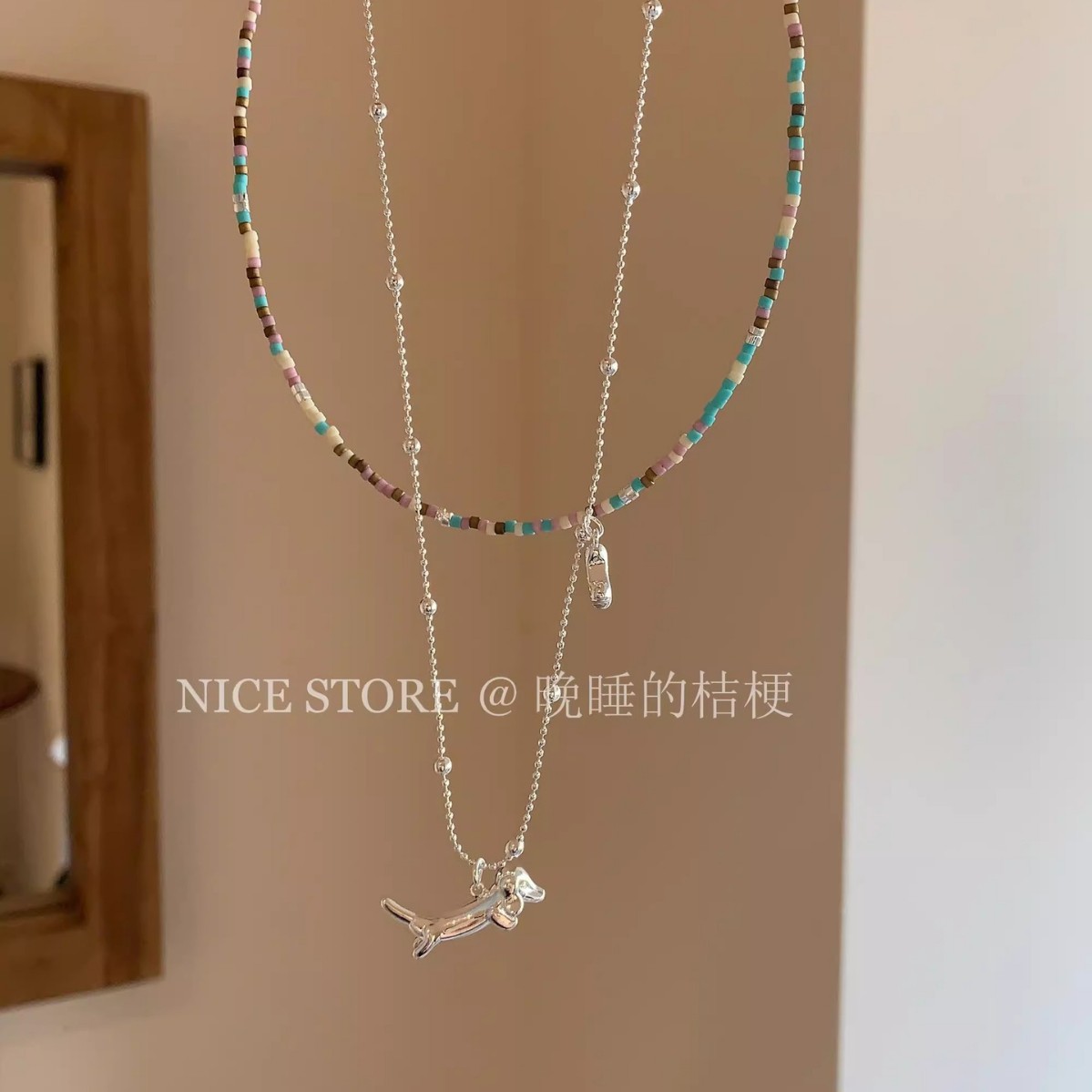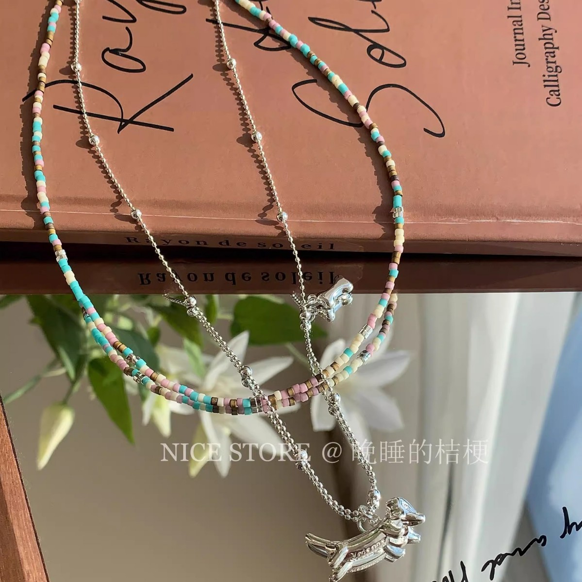 「可爱小斗」夏日小清新叠戴项链多巴胺少女串珠锁骨链