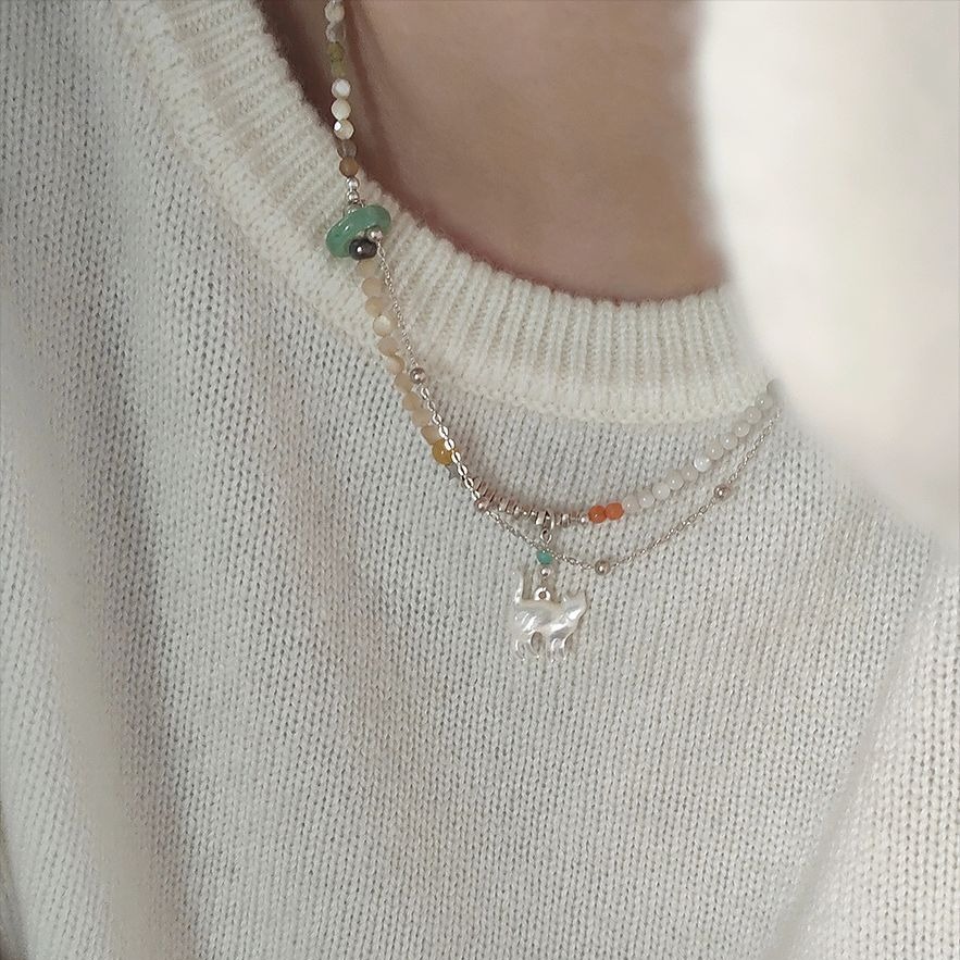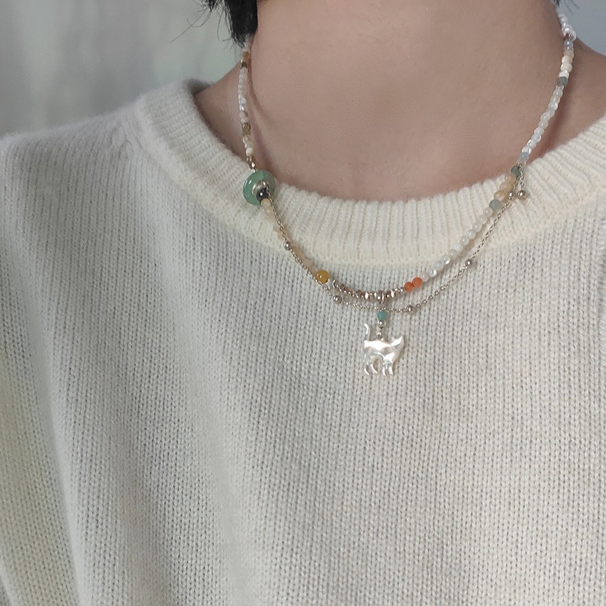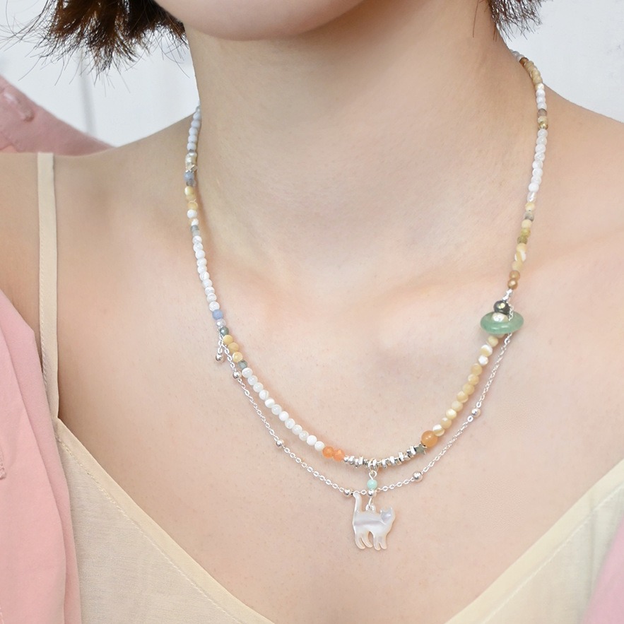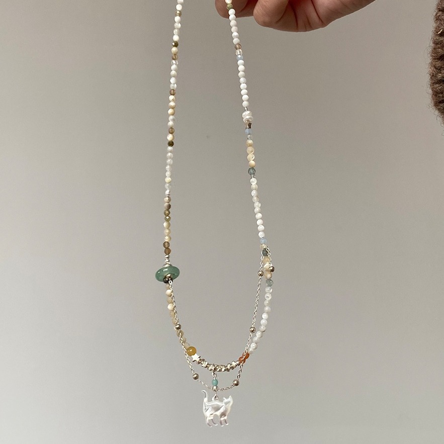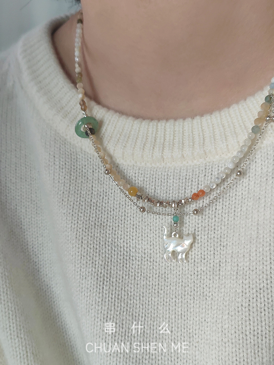 「宇宙小猫」串什么原创设计贝壳猫咪元素串珠饰品碎银气质项链女