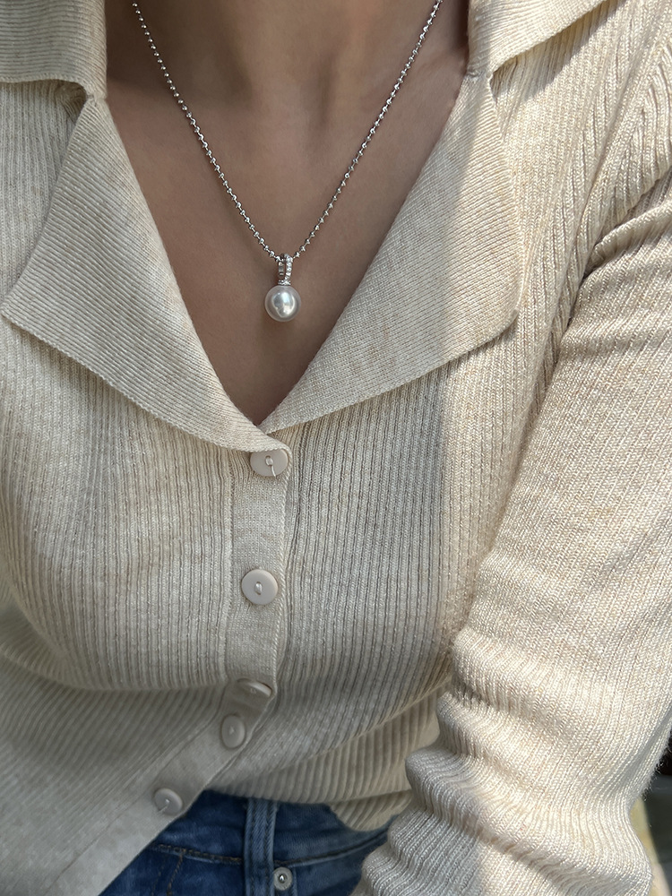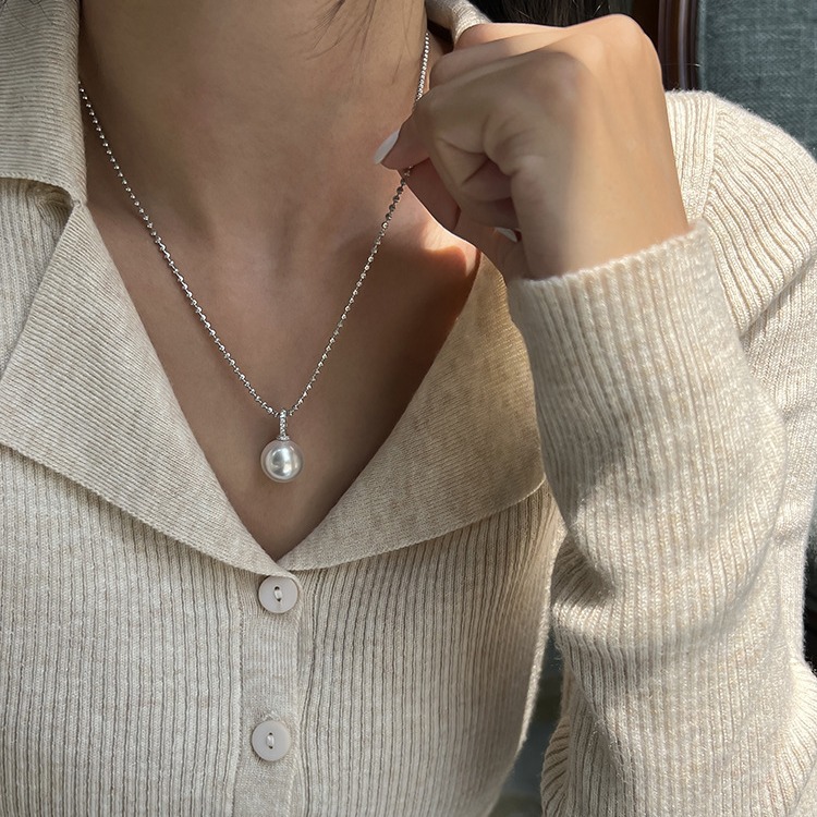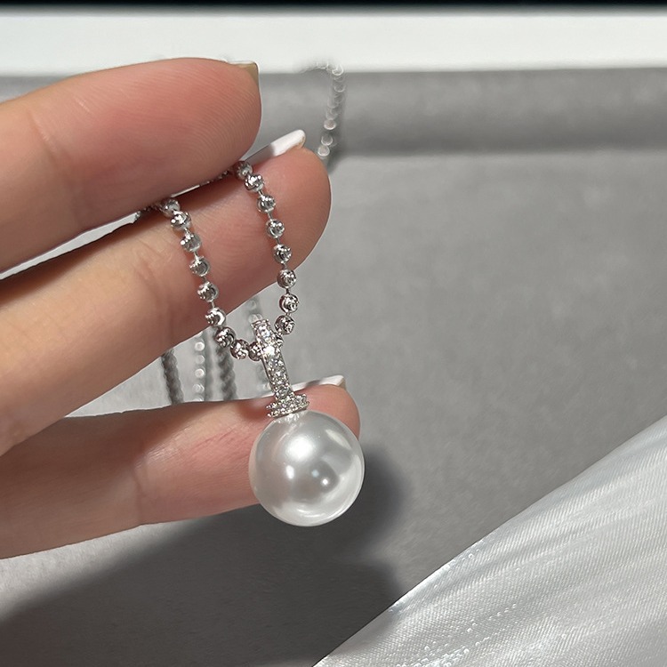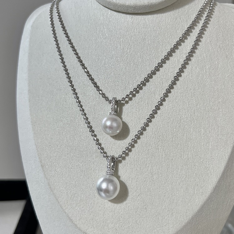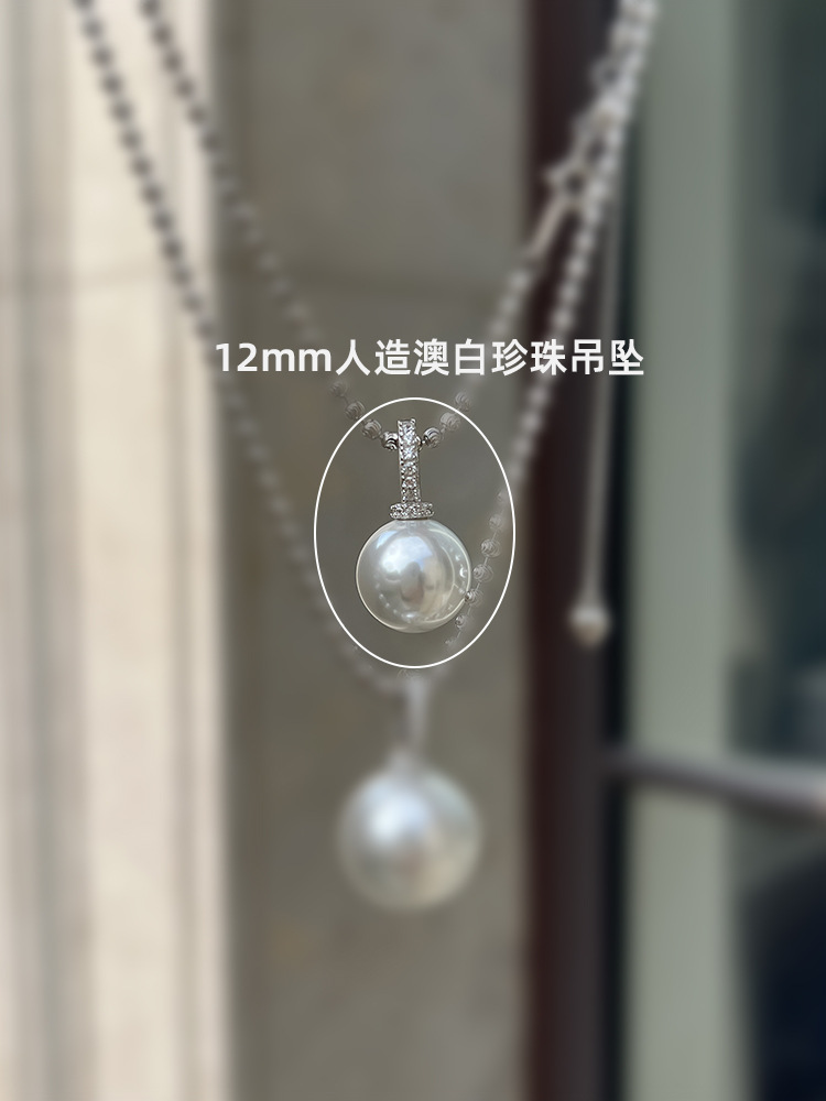 莹润澳白色水晶珍珠万能扣闪珠项链轻奢小众毛衣链女