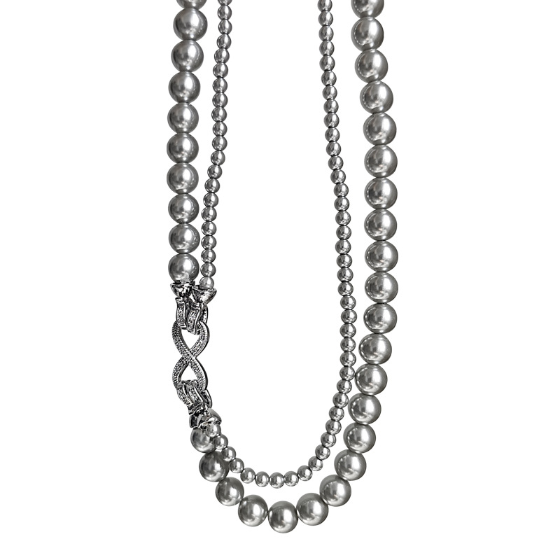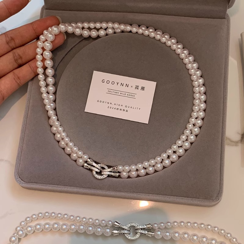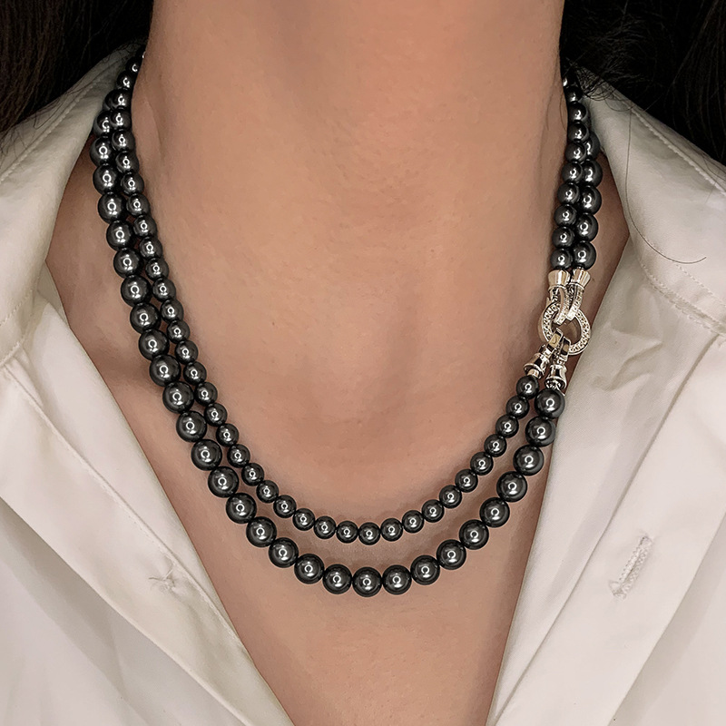 施家双层叠戴珍珠项链女轻奢小众高级大气锁骨颈链新款毛衣链