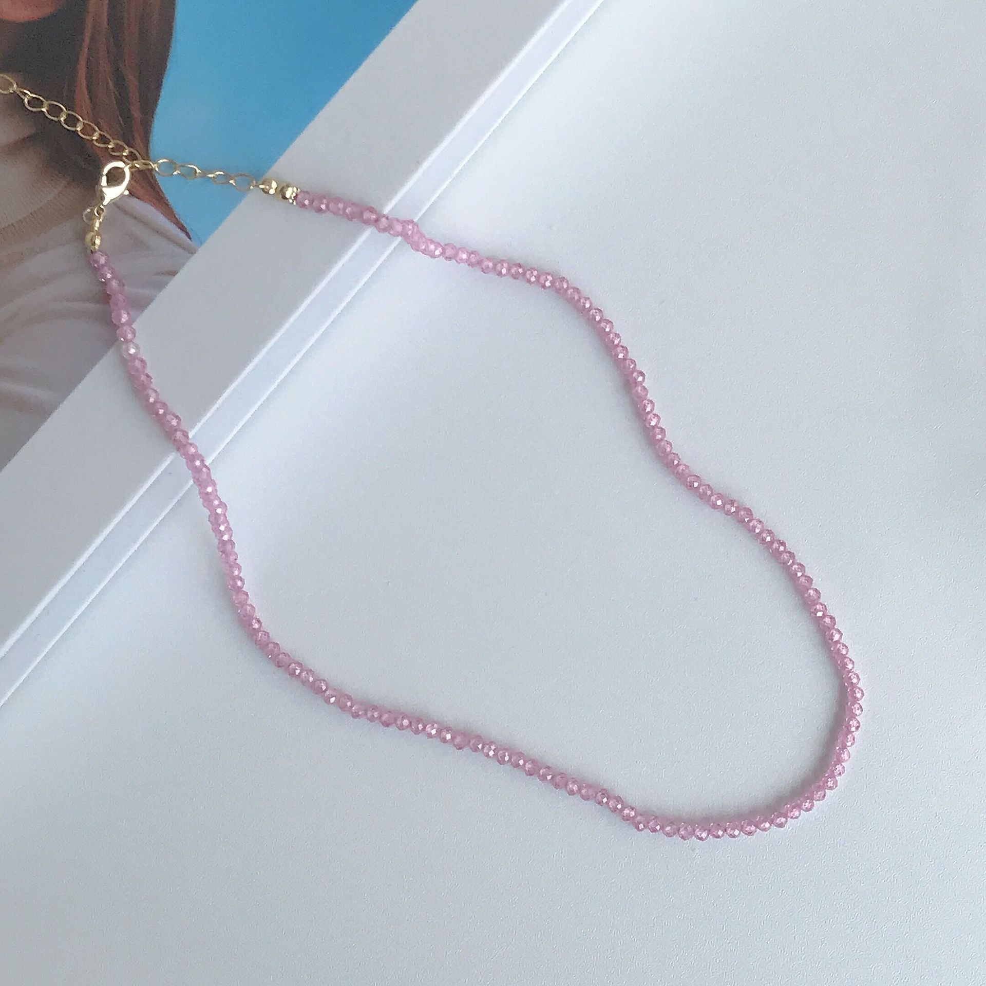 3mm晶粉色锆石项链