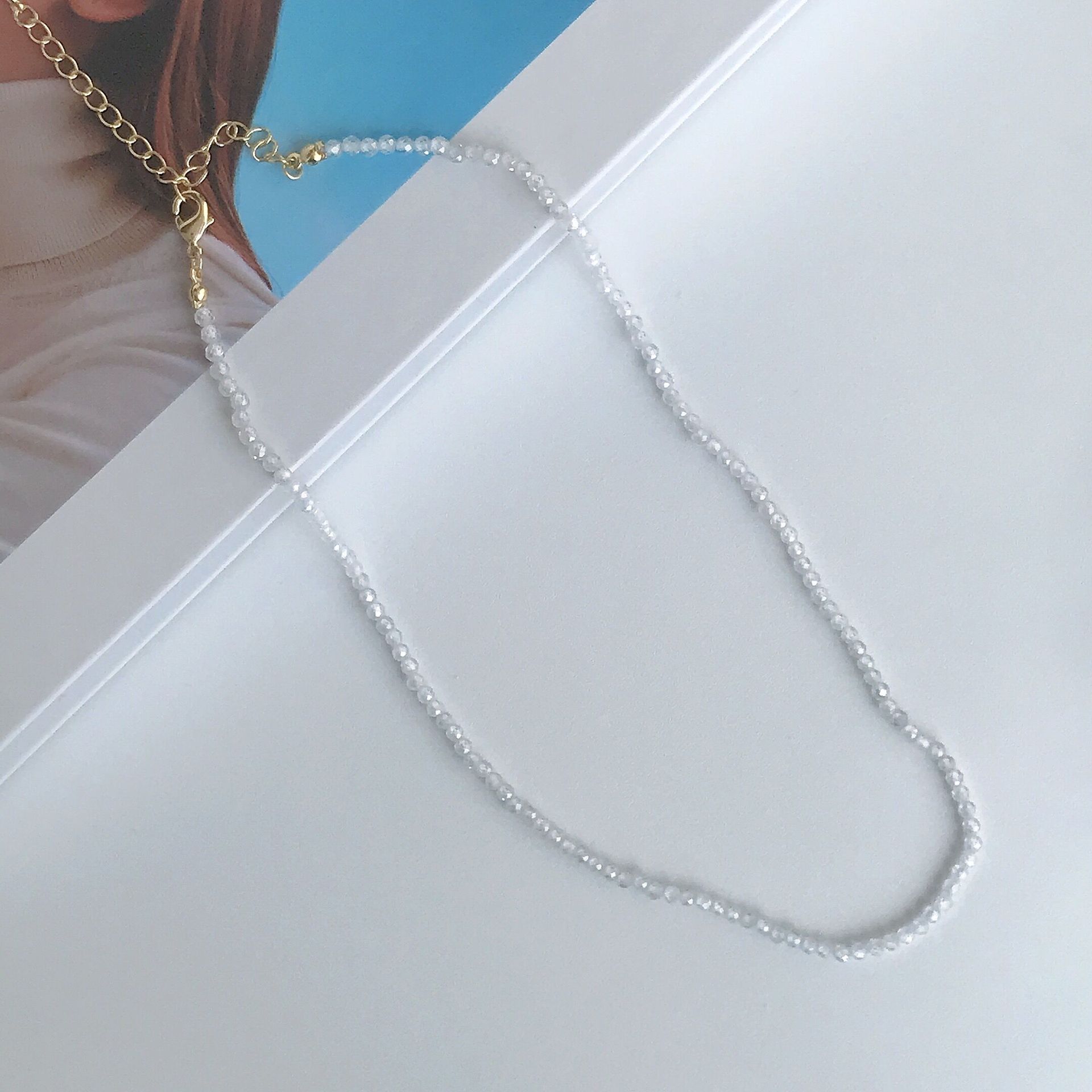 3mm闪闪白天然锆石项链