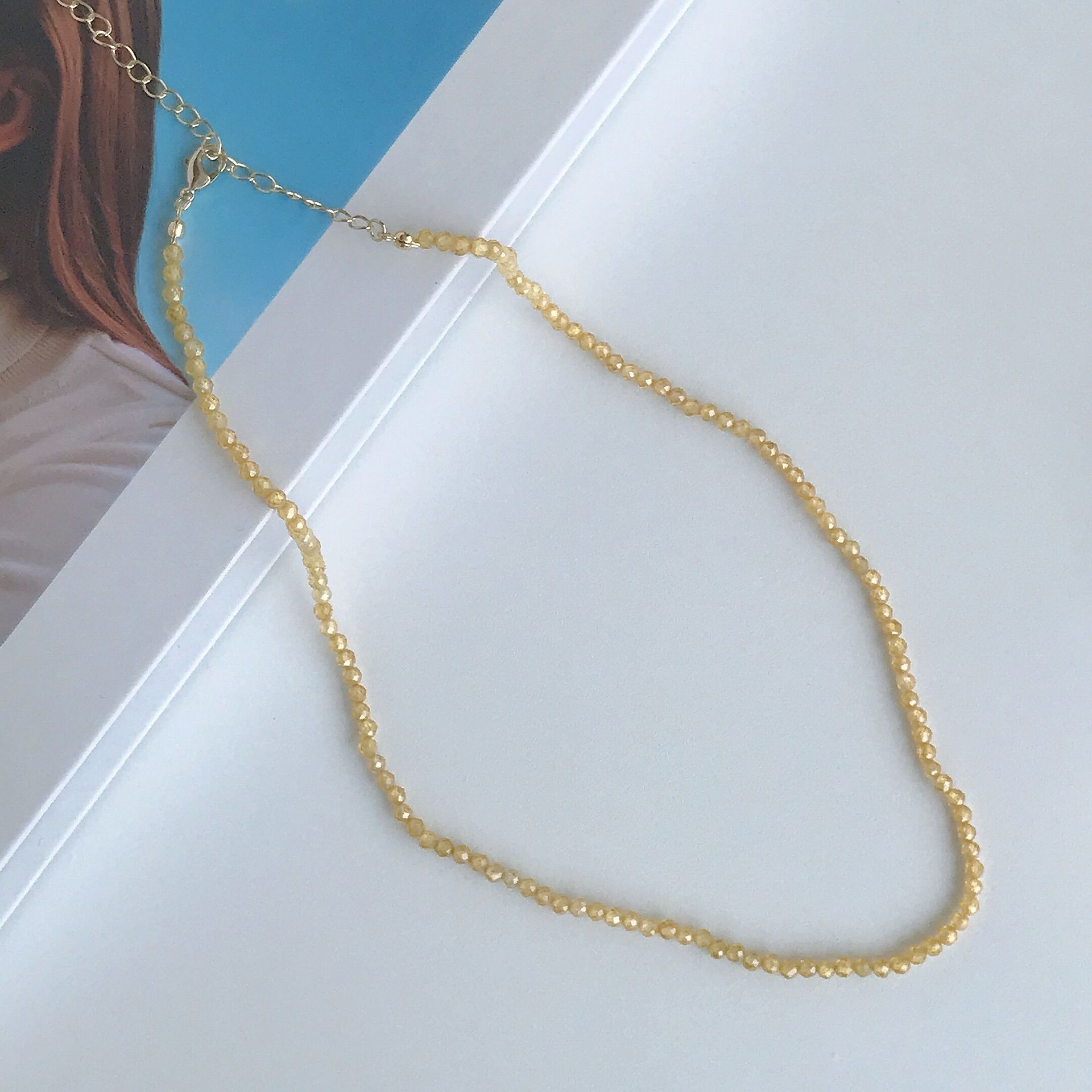 3mm 香槟黄天然锆石项链