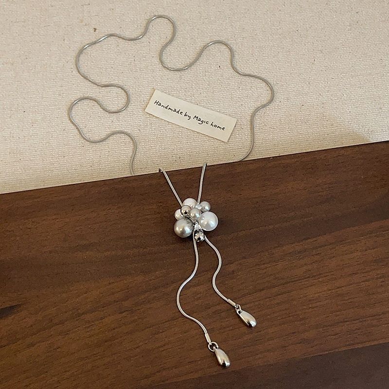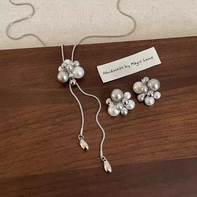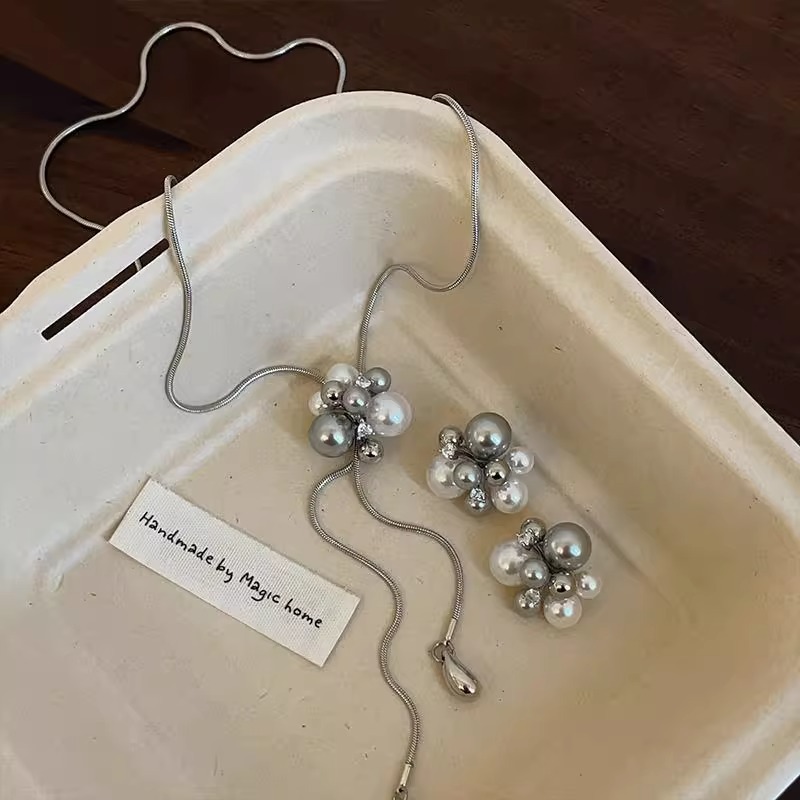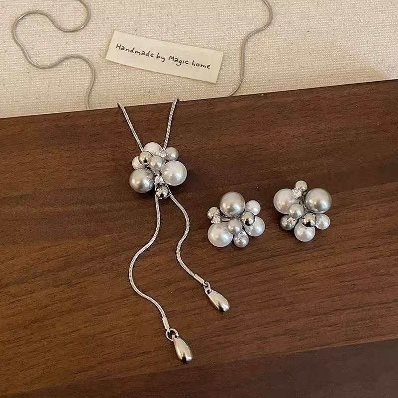 小众设计感烟花珍珠抽拉式项链耳钉女法式复古个性百搭颈链毛衣链