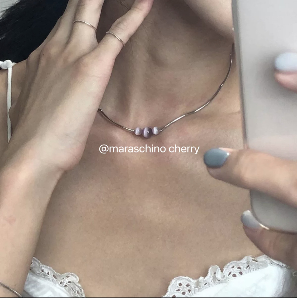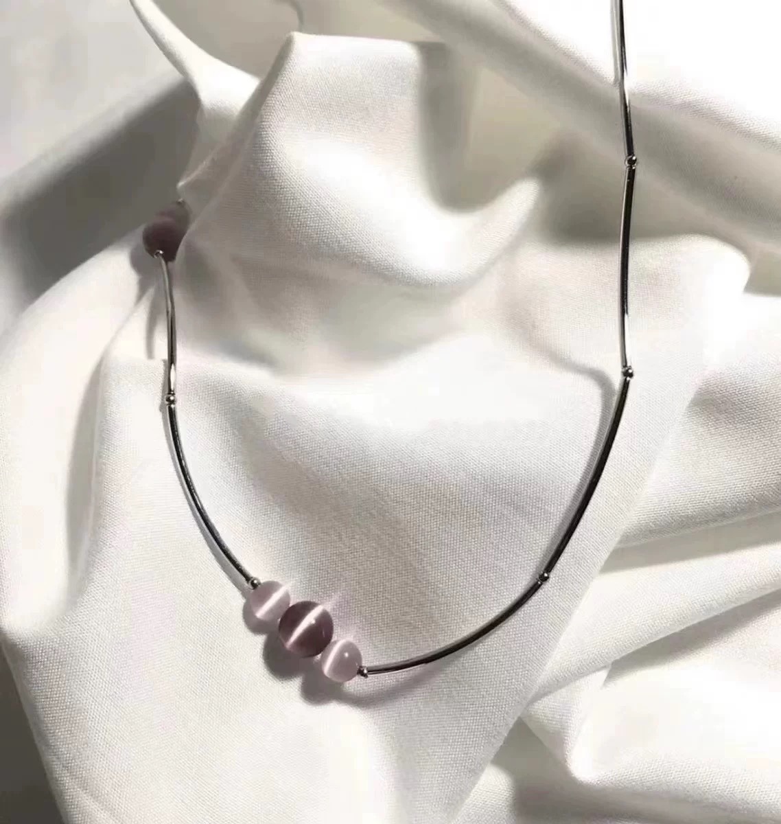 Cherry /韩国简约紫猫眼石项链颈链小众设计感简约冷淡风锁骨链