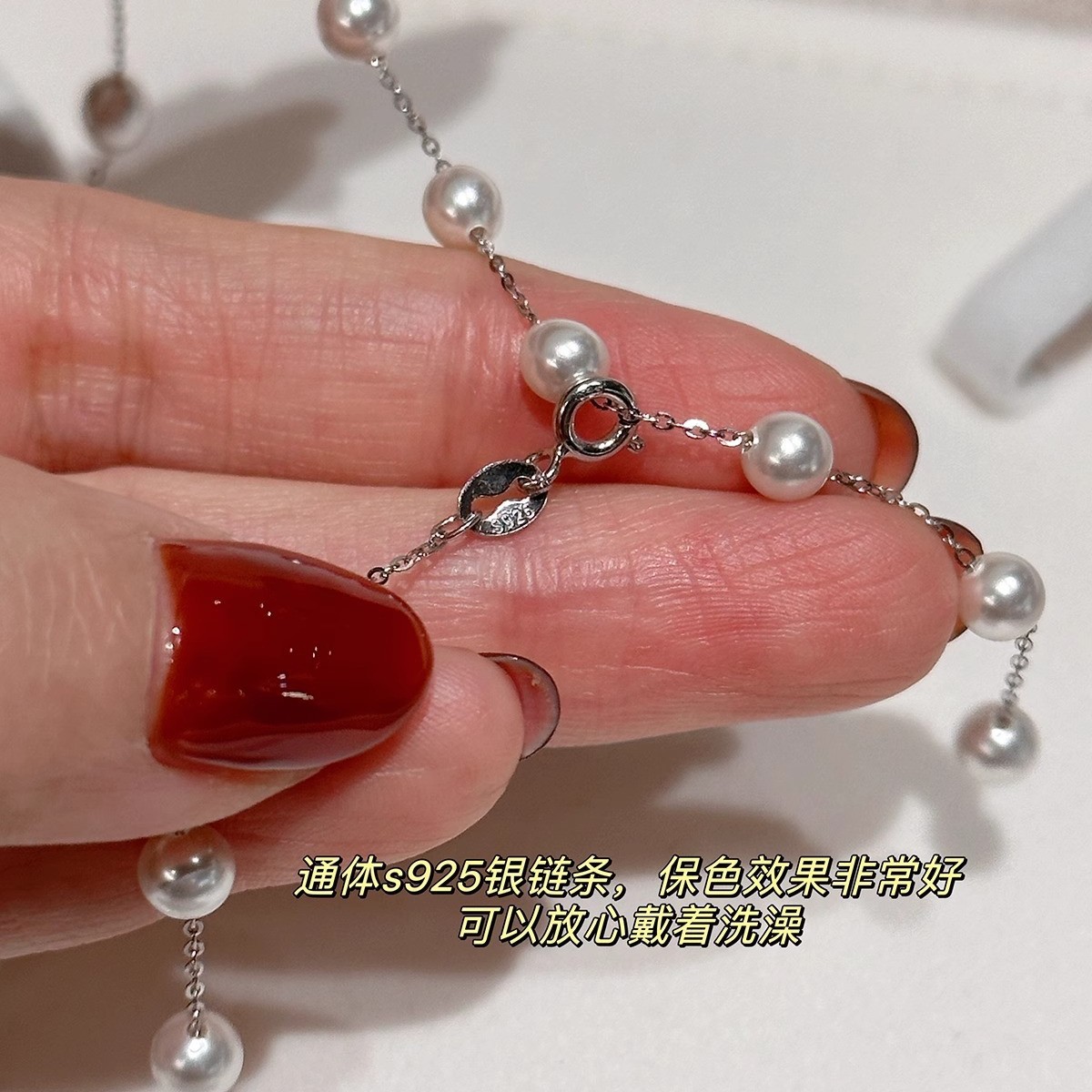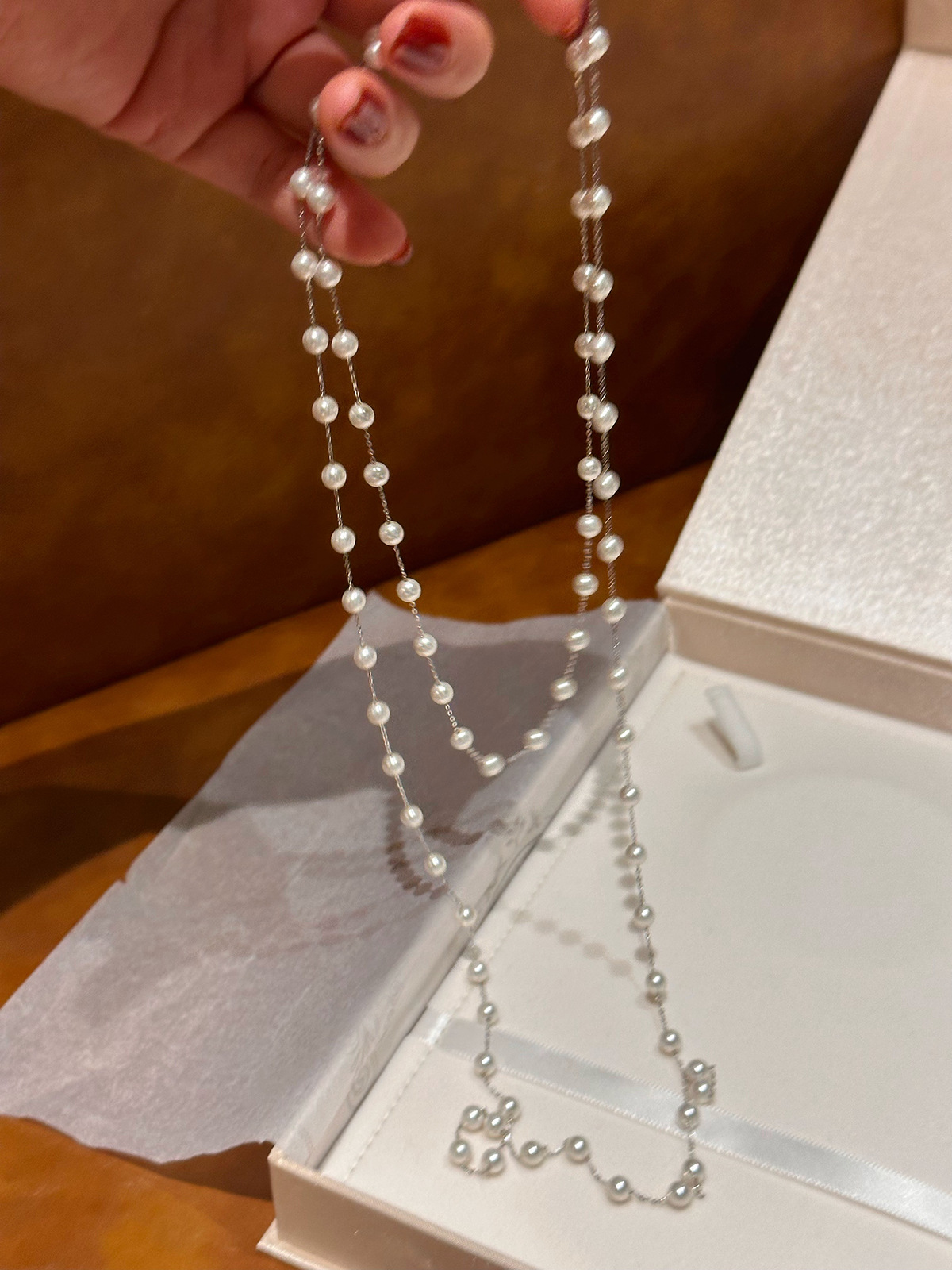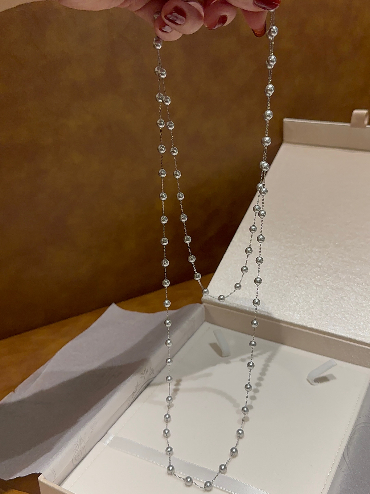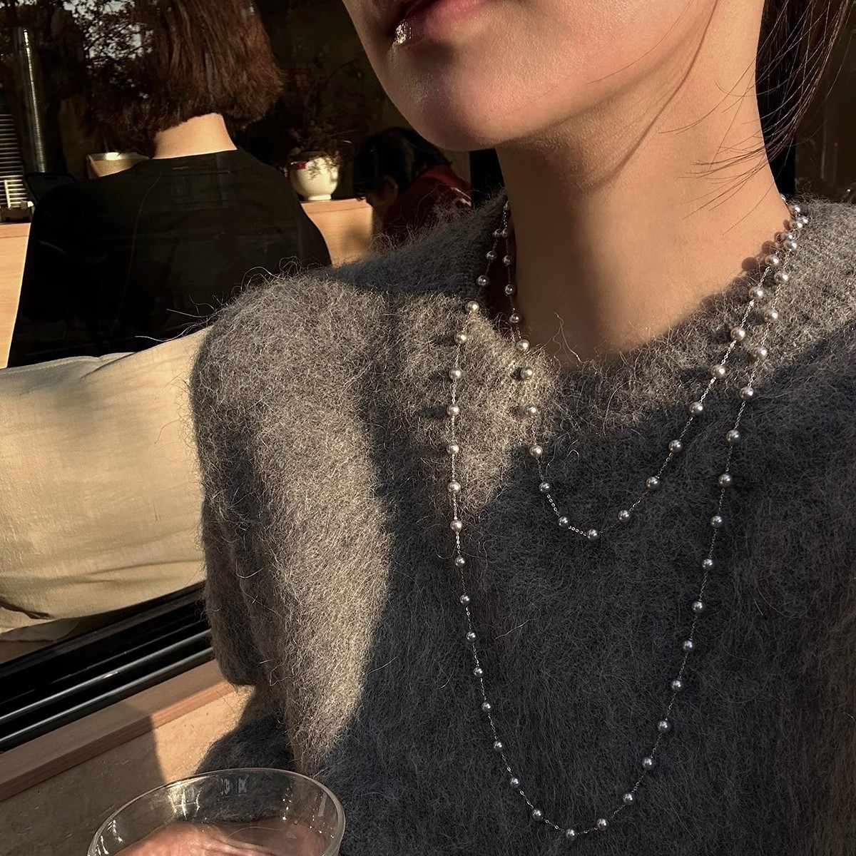 密版满天星高档水晶珍珠项链女毛衣链长款S925银锁骨链气质精致