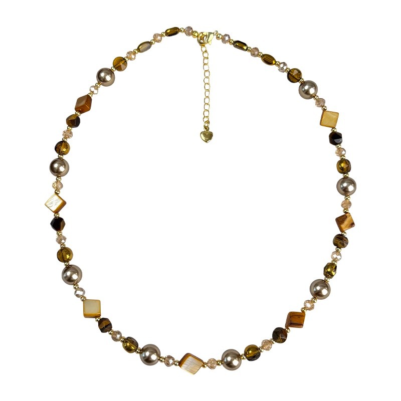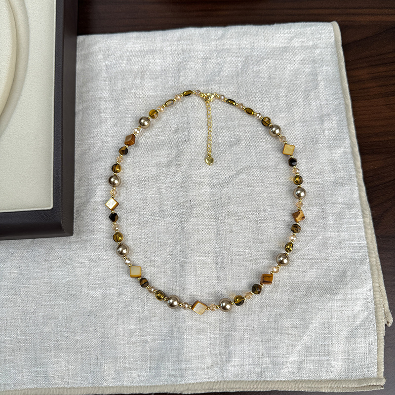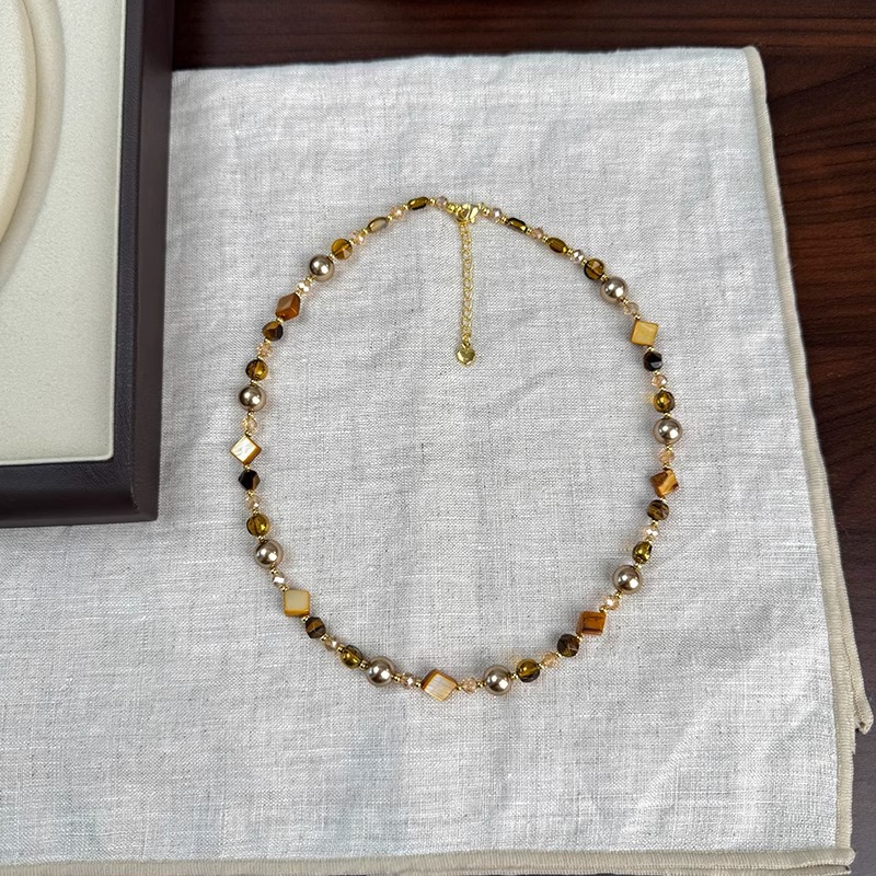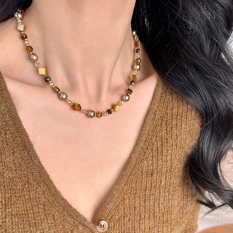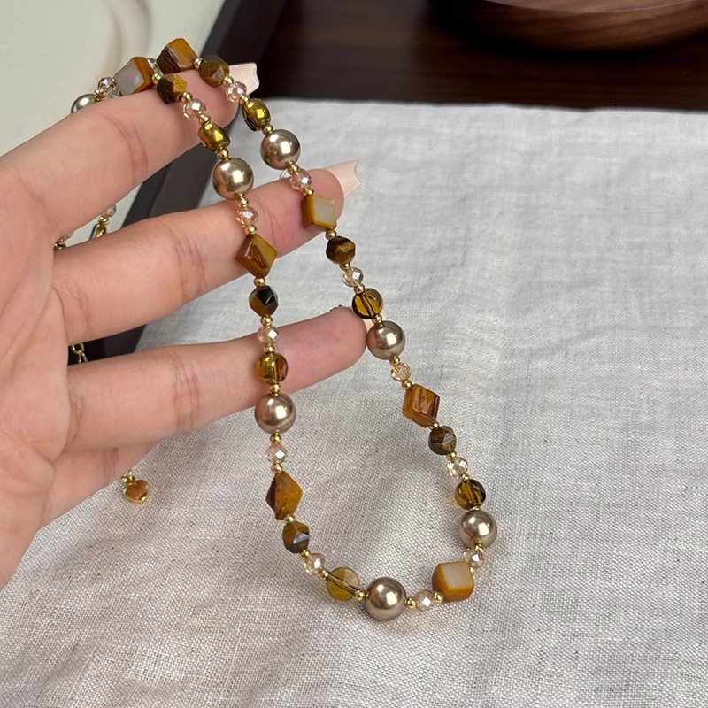 原创时髦秋冬美拉德虎眼石串珠项链气质轻奢简约毛衣链女