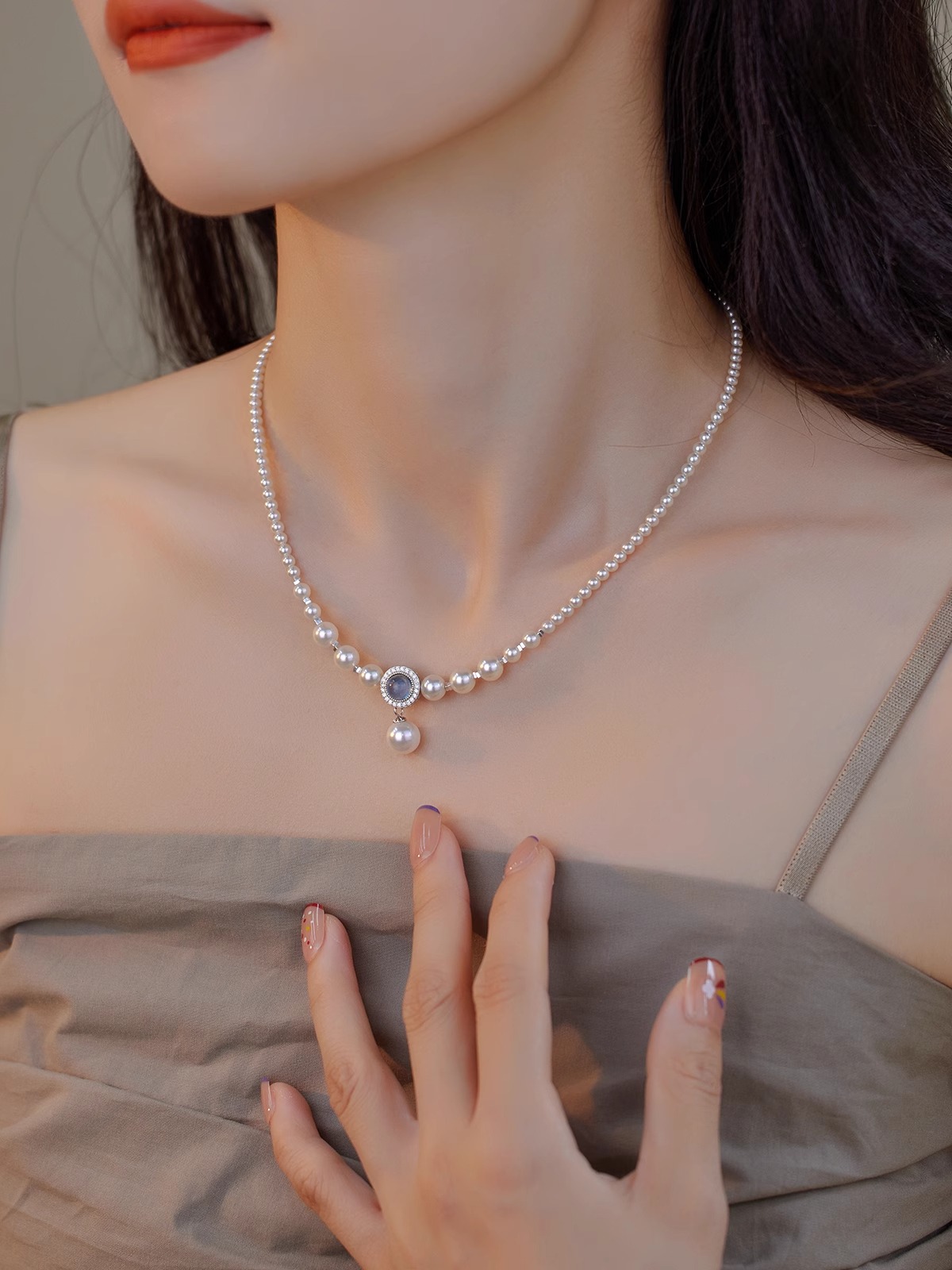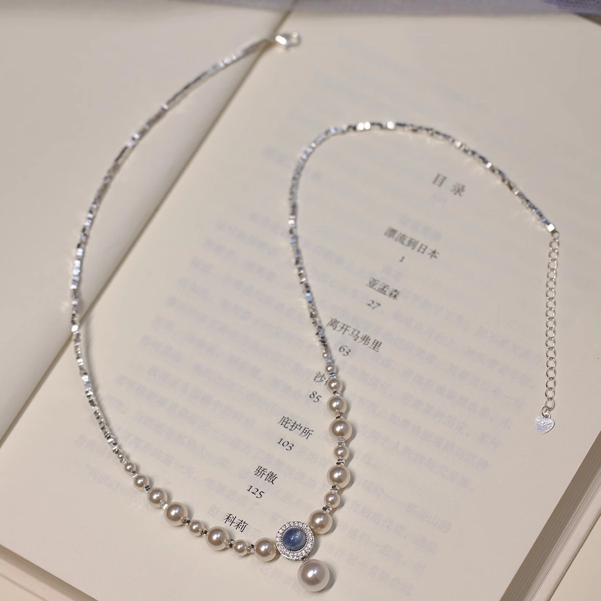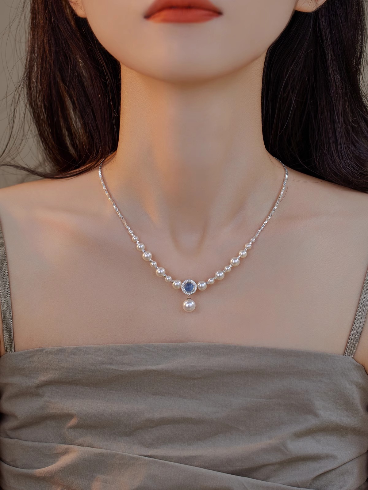 海蓝宝珍珠法式轻奢小众设计感项链简约气质百搭