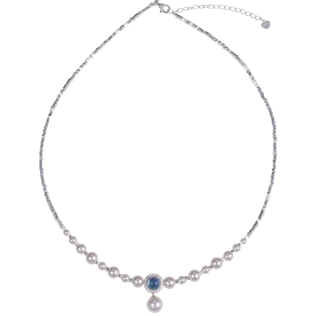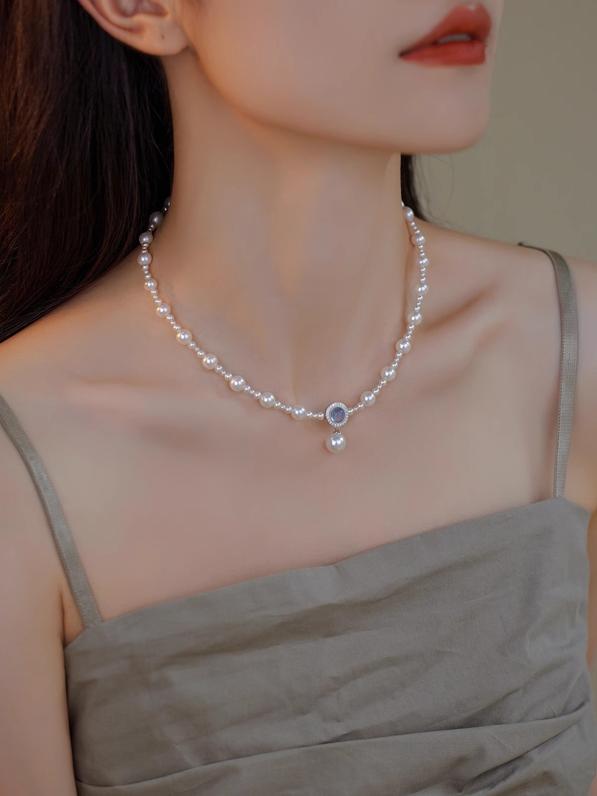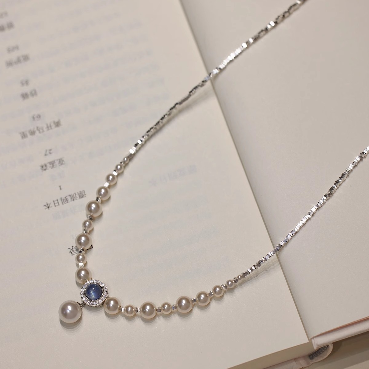 海蓝宝珍珠法式轻奢小众设计感项链简约气质百搭