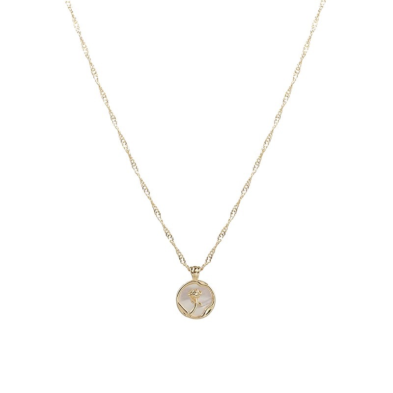 法式Vintage复古珐琅贝母沙漠玫瑰花项链气质毛衣链女